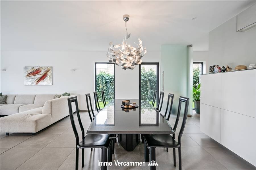 Cette belle villa, construite en 2010, est équipée de tout le confort moderne et d'agréables extras, y compris la climatisation, l'alarme, la piscine chauffée, etc. Cette belle maison familiale a obtenu un EPC favorable. Grâce à son espace de vie spacieux et à son agencement pratique, la propriété constitue une maison idéale. Le spacieux hall d'entrée avec vestiaire et toilettes invités donne accès au séjour avec salle à manger, coin TV et cuisine semi-ouverte hyper-équipée attenante. Grâce aux hauts plafonds et aux grandes fenêtres, vous bénéficiez d'une grande luminosité et d'une belle vue sur le jardin paysager avec piscine chauffée. Au premier étage, on trouve actuellement 4 chambres à coucher, dont une chambre principale avec dressing. Une salle de bains spacieuse est équipée d'une douche à l'italienne, d'une baignoire et d'un meuble de salle de bains avec double lavabo. Au huitième étage, il y a de la place pour un bureau ou un coin de jeu. Un vaste espace de rangement est garanti grâce au grenier de rangement, au débarras/buanderie et au double garage. A l'arrière de la maison, vous pouvez vous détendre et profiter de la terrasse spacieuse et du jardin parfaitement orienté au sud.