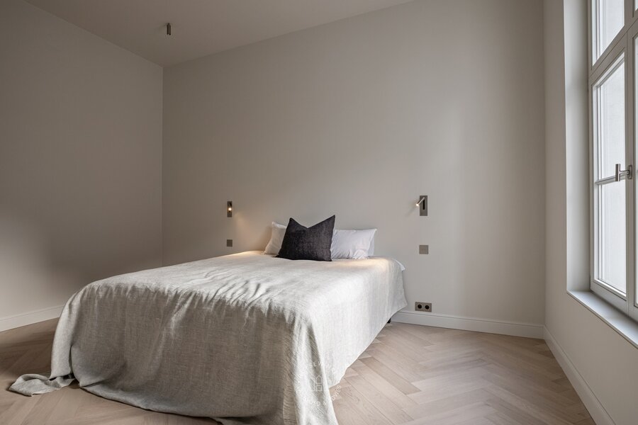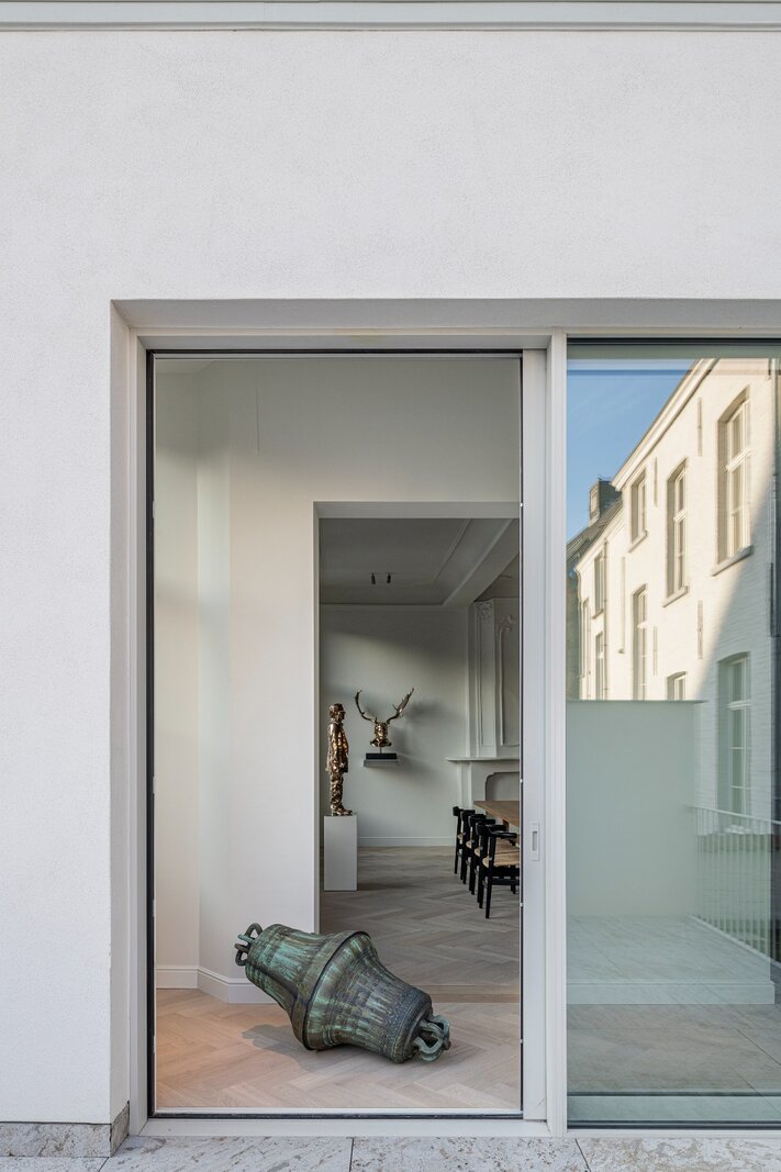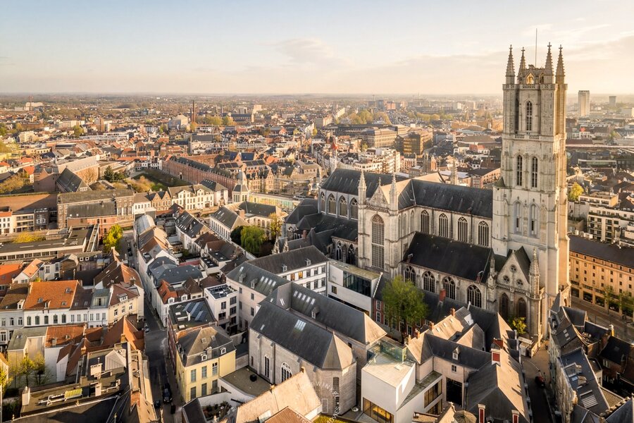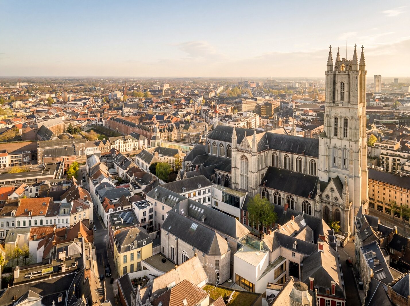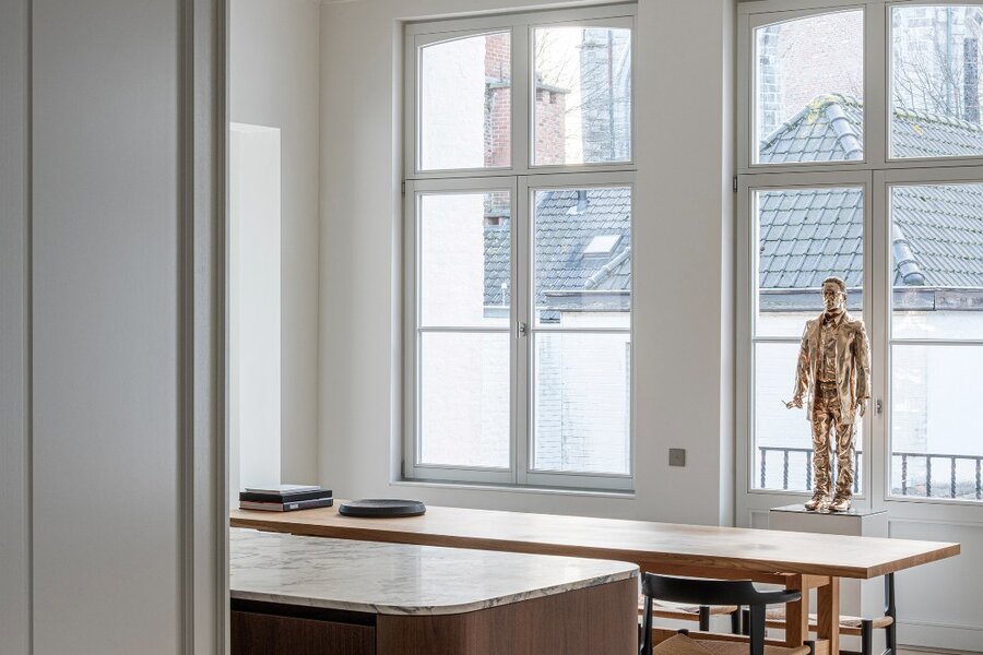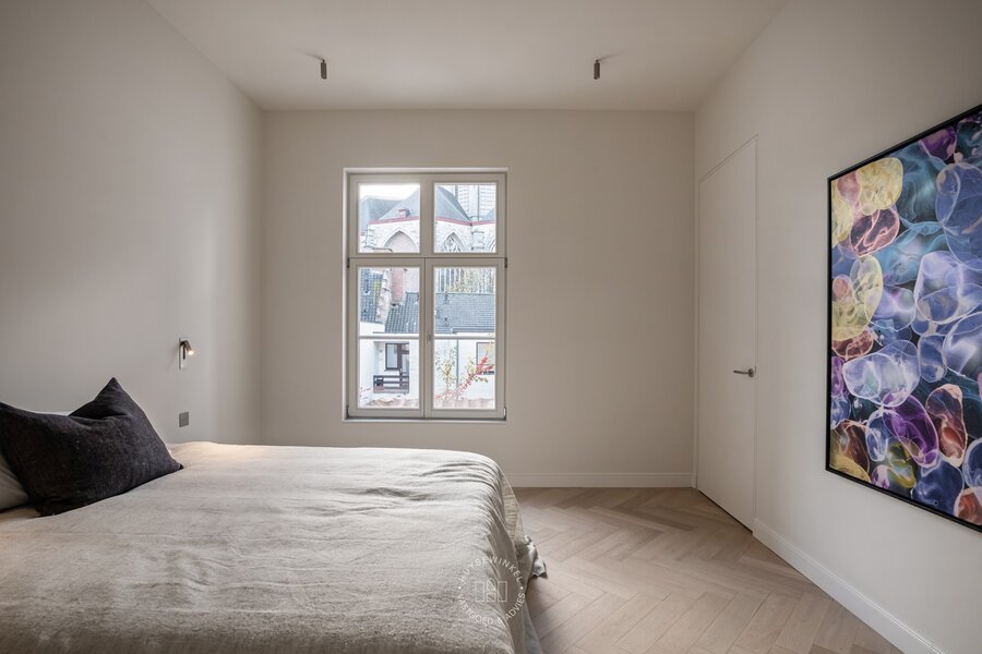 De leefruimte vormt het absolute hart van het appartement en imponeert door haar royale volumes, overvloedige lichtinval en prachtige zichtlijnen. Vanuit deze ruimte geniet u van een uniek panorama op de Sint-Baafskathedraal — een zeldzaam en begeerd uitzicht dat elke dag opnieuw inspireert.