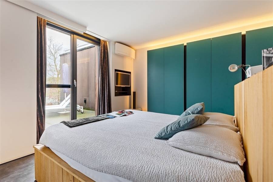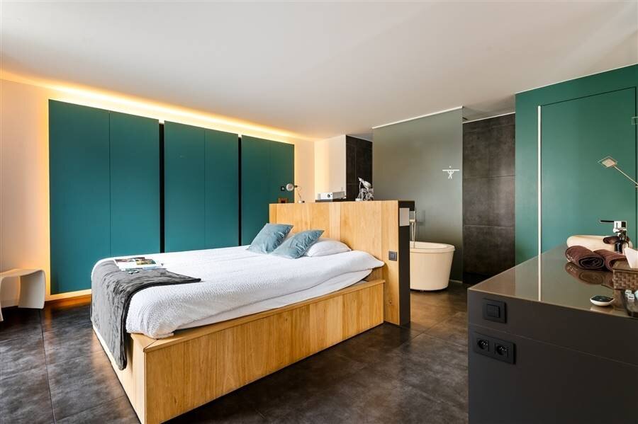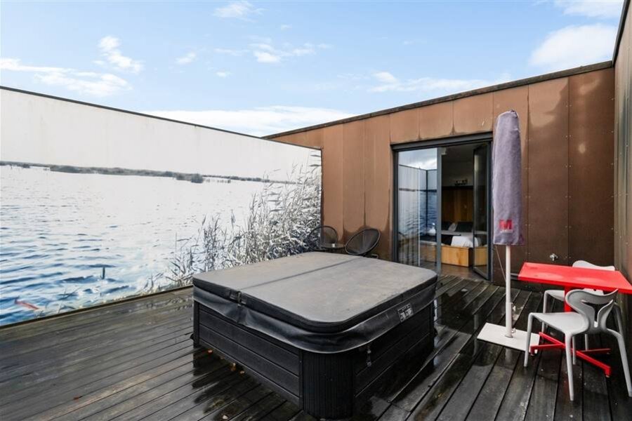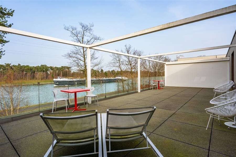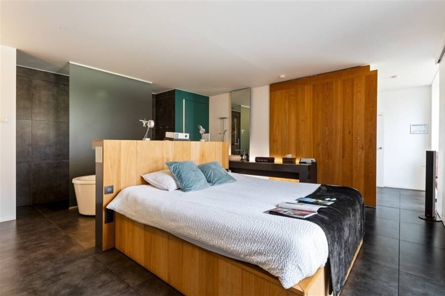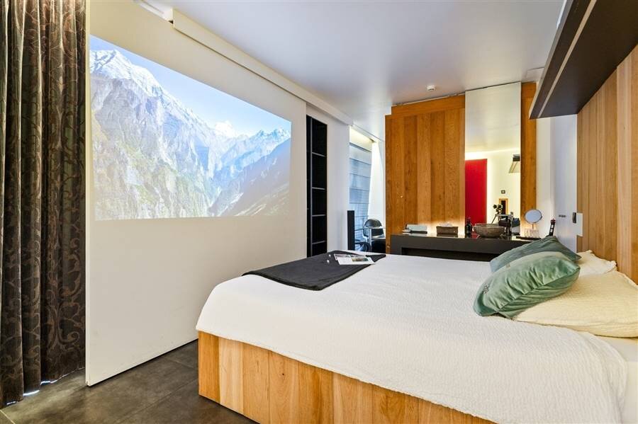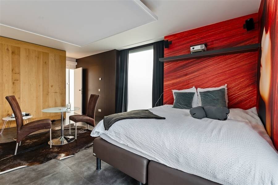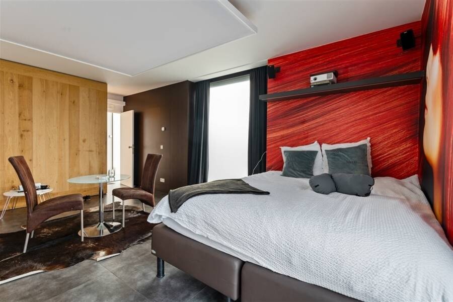 Le loft comprend quatre chambres de taille normale, une au rez-de-chaussée et trois à l'étage. La chambre arrière bénéficie d'une terrasse spacieuse donnant sur l'eau. La chambre avant gauche dispose également d'une grande terrasse privée. Chaque chambre est conçue comme une suite privée exclusive avec un lit lounge design pour deux personnes, un cinéma privé en qualité cinéma depuis le lit, des ambiances de couleurs réglables, un élément infrarouge, un système de musique intégré, une douche à effet de pluie et un lavabo. Le chauffage/refroidissement au plafond et au sol et la climatisation assurent un confort optimal tout au long de l'année.