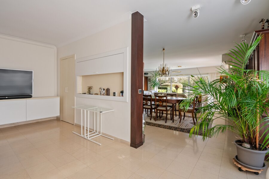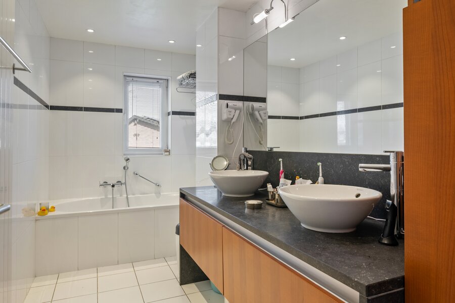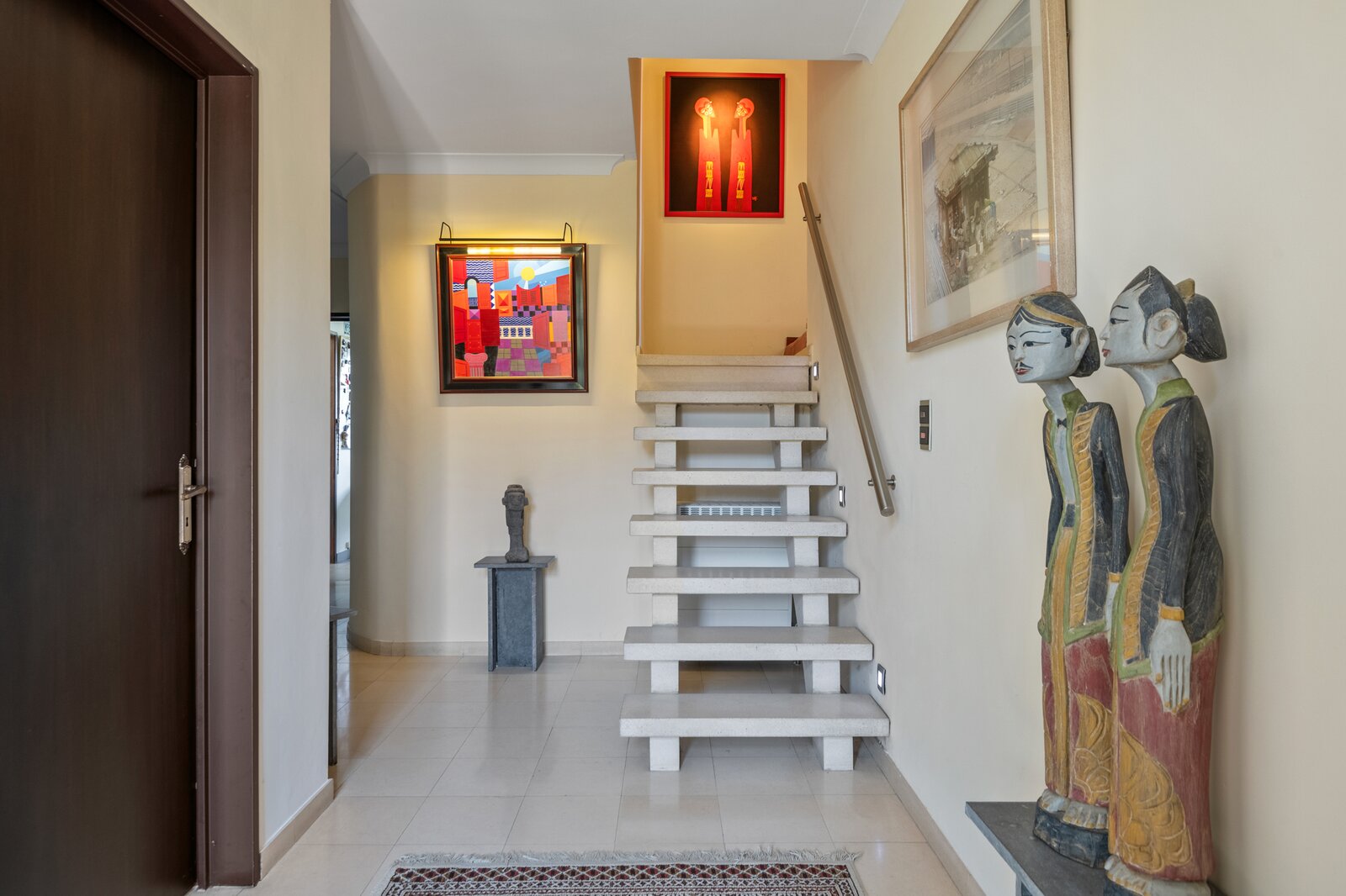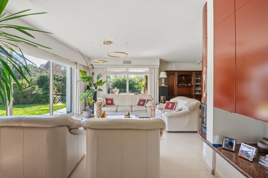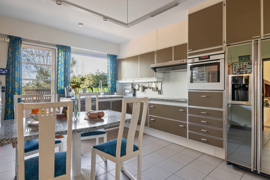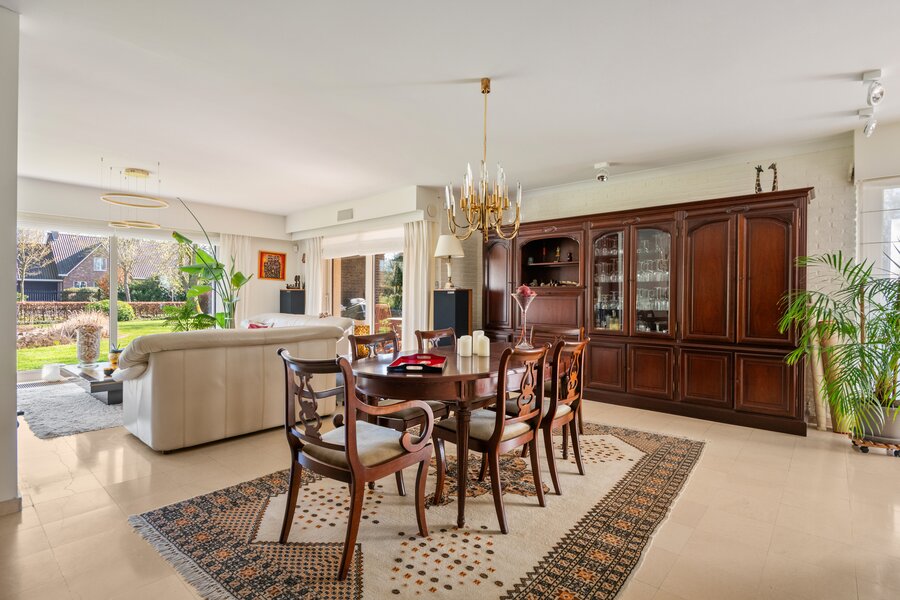 Binnenin beschikt de woning over vijf volwaardige slaapkamers en drie badkamers. De lichtrijke leefruimte vormt het centrale punt van de woning en biedt voldoende plaats voor een gezellige zithoek, eetplaats en een aparte bureau/tvkamer. Hiernaast beschikt de woning over verschillende praktische voorzieningen zoals een aparte wasplaats, een afzonderlijke wijnkelder en een ruime garage met bijkomende parkeermogelijkheden op het terrein.