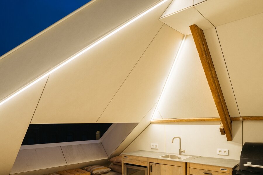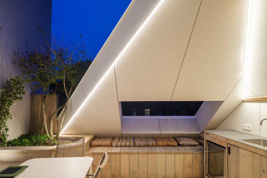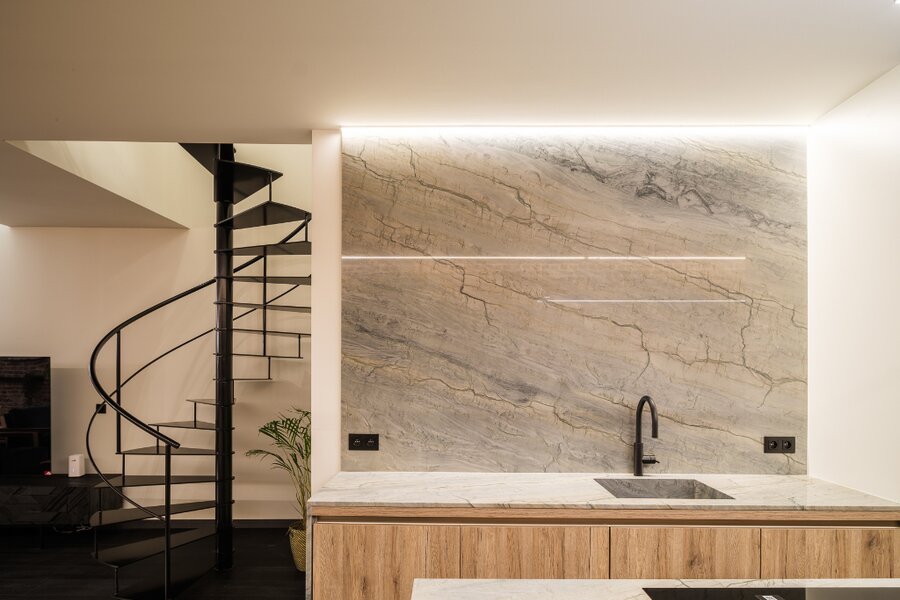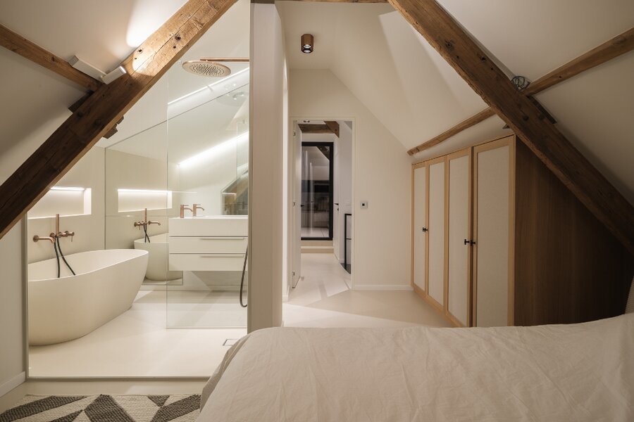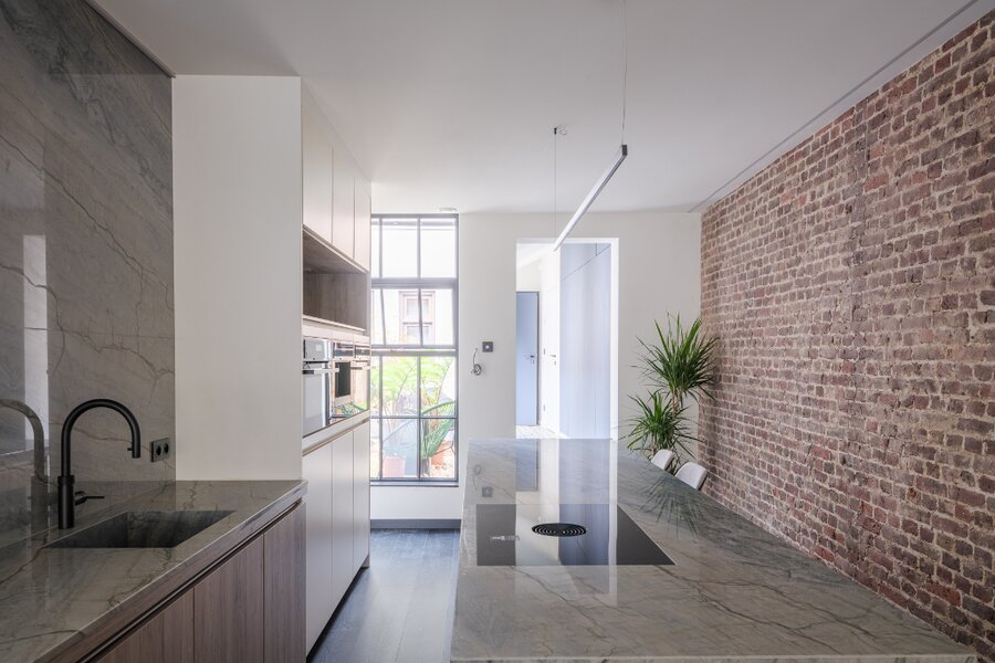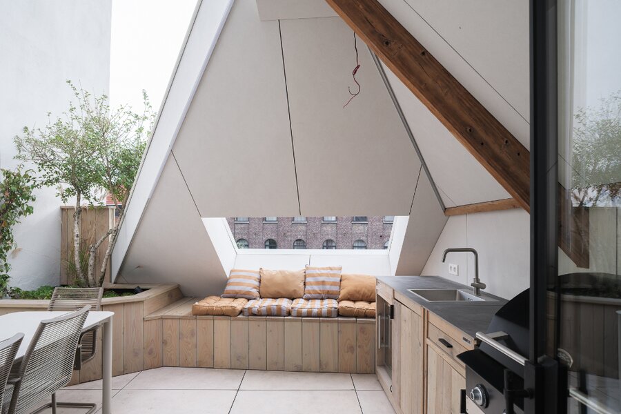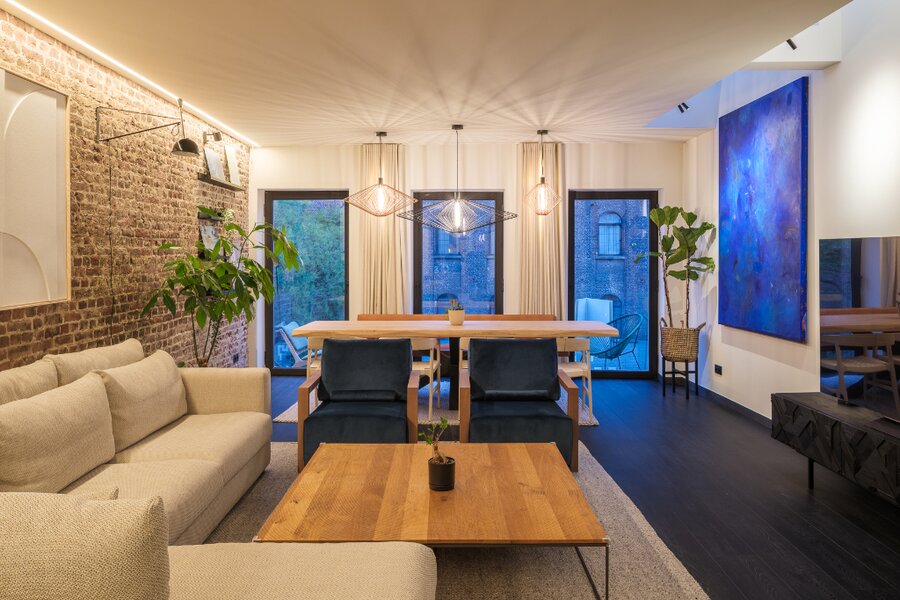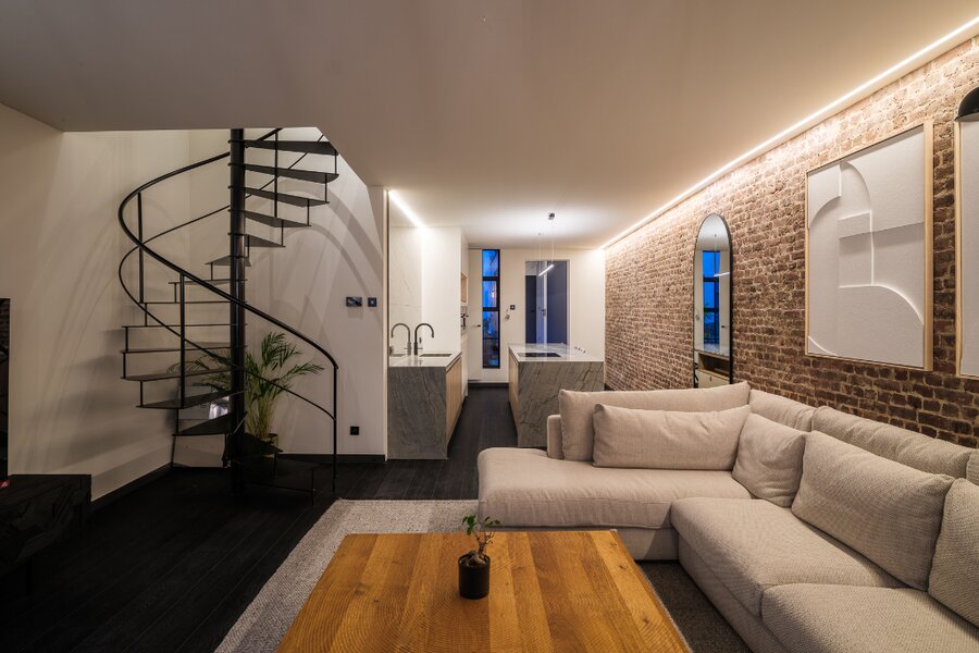 Deze uitzonderlijke loft, voorzien van twee privatieve terrassen (ca. 5 m² en 20 m²), werd in 2025 volledig en hoogwaardig gerenoveerd, met oog voor elk detail.