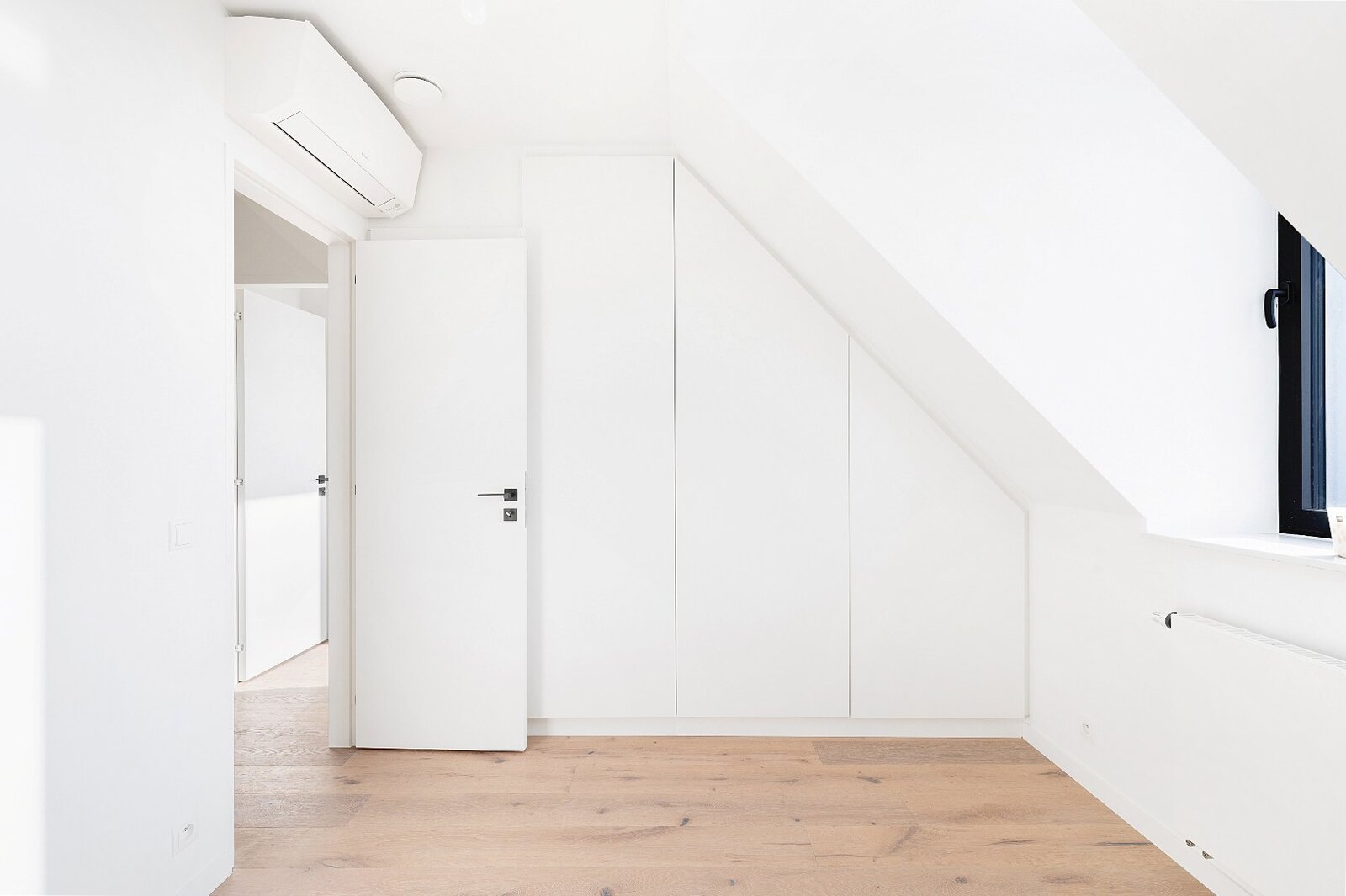 À l’étage se trouve la chambre principale avec placards intégrés et salle de bains attenante. Deux autres chambres à part entière, également équipées de placards intégrés, se partagent une salle de douche. Toutes les chambres sont équipées de la climatisation.