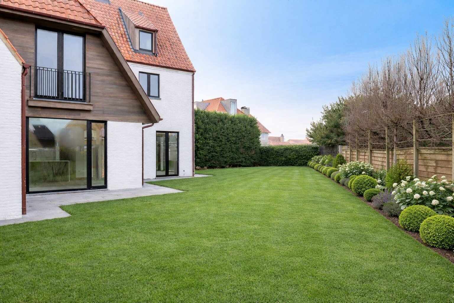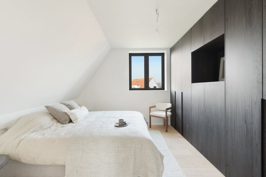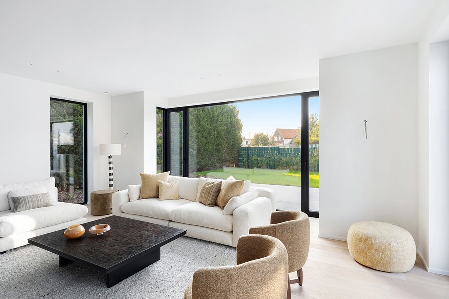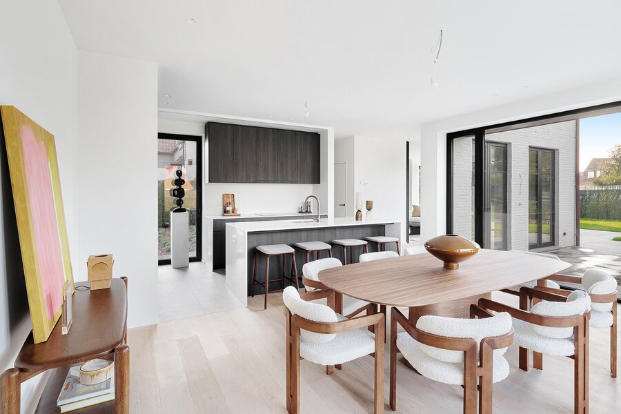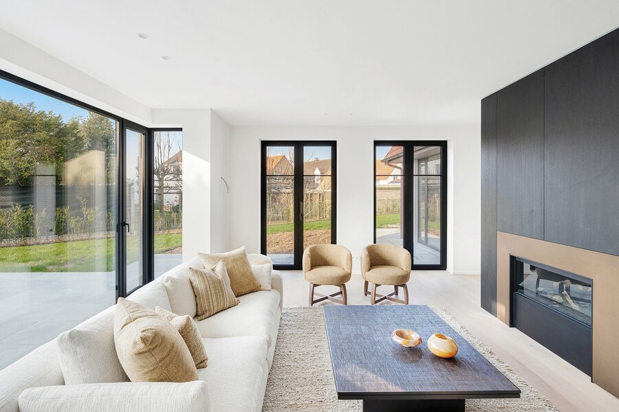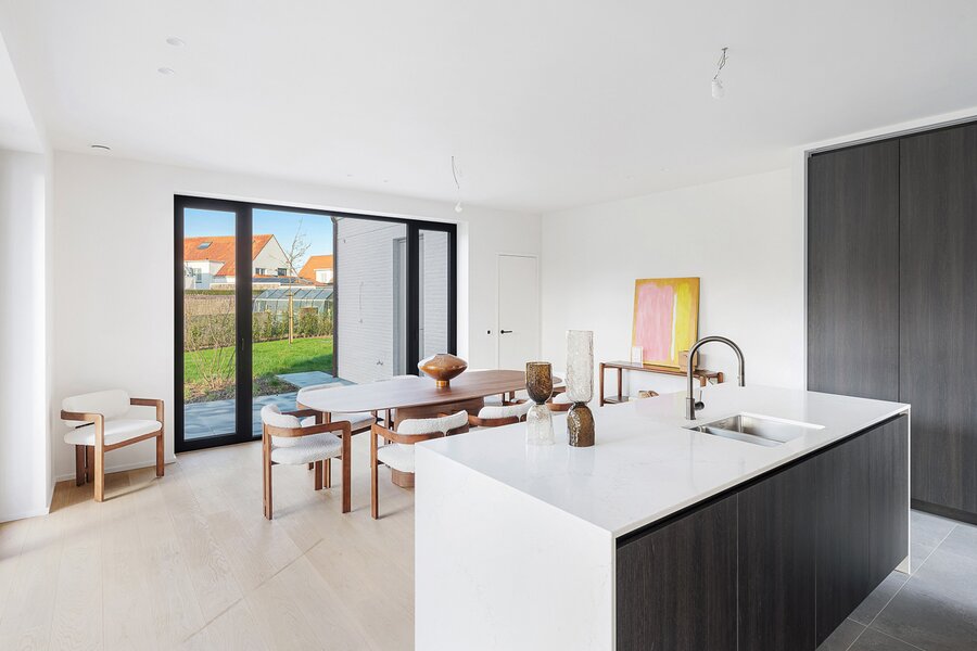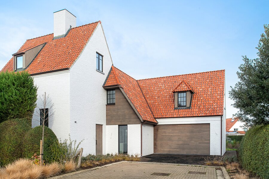 Villa de nouvelle construction située au bord du Zoute. Composition: hall d’entrée avec vestiaire et wc invités. Agréable séjour avec feu ouvert au gaz Spacieuse salle à manger ouvrant sur terrasse et jardin clôturé. Cuisine Américaine entièrement équipée (appareils Miele). À l’étage : chambre des maîtres avec salle de bains attenante (baignoire, douche, lavabo et toilette). 2ème chambre à coucher avec armoires encastrées et bureau. 3ème et 4ème chambre à coucher. Salle de douche pratique. Wc de nuit. Au second étage: 5ème chambre à coucher avec salle de douche pratique. Wc. Grand garage pour 2 voitures et plusieurs emplacements de parking extérieurs. Visite volontiers après rendez-vous en un de nos bureaux. A saisir!
