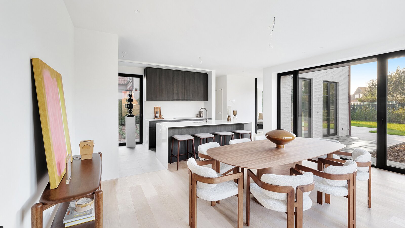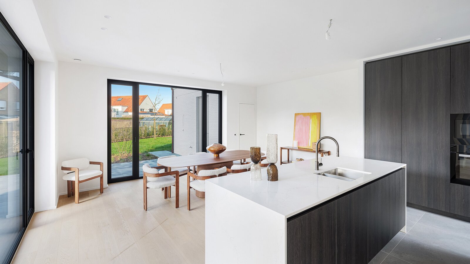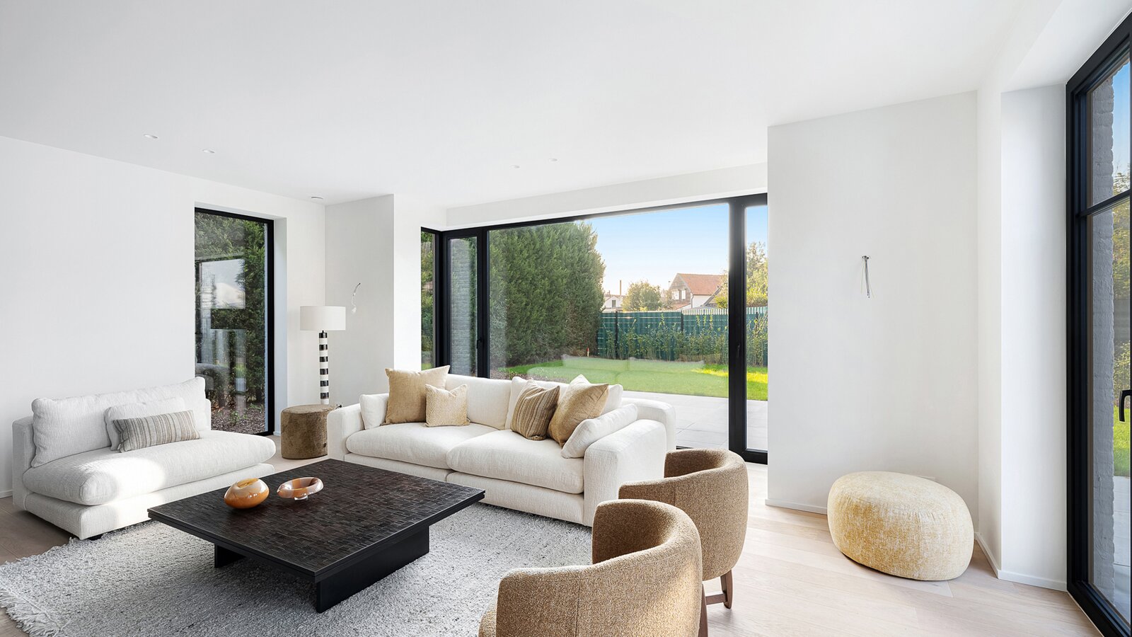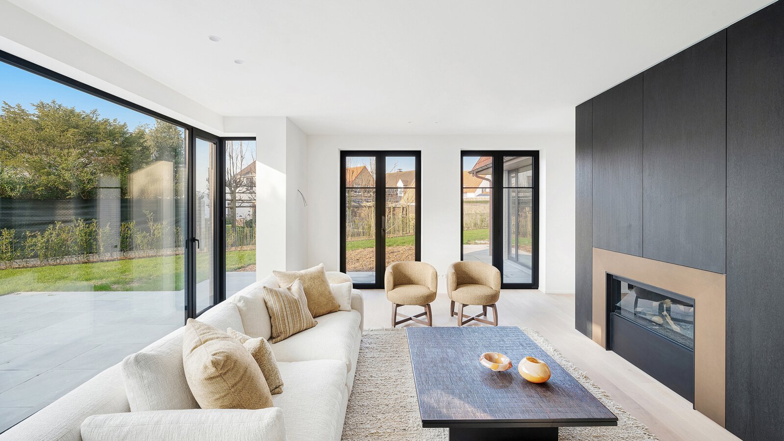 Villa de nouvelle construction située au bord du Zoute. Composition: hall d’entrée avec vestiaire et wc invités. Agréable séjour avec feu ouvert au gaz Spacieuse salle à manger ouvrant sur terrasse et jardin clôturé. Cuisine Américaine entièrement équipée (appareils Miele). À l’étage : chambre des maîtres avec salle de bains attenante (baignoire, douche, lavabo et toilette). 2ème chambre à coucher avec armoires encastrées et bureau. 3ème et 4ème chambre à coucher. Salle de douche pratique. Wc de nuit. Au second étage: 5ème chambre à coucher avec salle de douche pratique. Wc. Grand garage pour 2 voitures et plusieurs emplacements de parking extérieurs. Visite volontiers après rendez-vous en un de nos bureaux. A saisir!