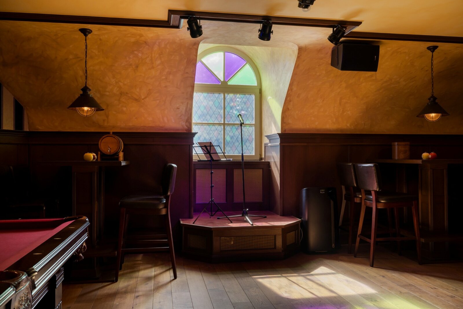 Op de verdieping bevindt zich een typisch Amsterdams bruin café dat tot in de puntjes is ingericht voor een echte belevenis. Daarnaast bevindt zich hier ook een privé-cinema, tevens uitgerust als een echte home-cinema. Om deze ontspannende sfeer te creëren in de gehele woning kan u gebruikmaken van diverse ingebouwde speakers en een geavanceerde domotica van het topmerk Crestron voor een optimaal comfort.