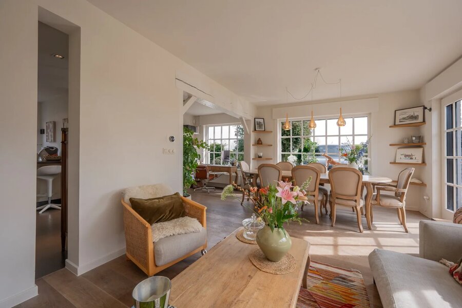 Dans toute la maison, on profite de vues étendues sur les Polders.