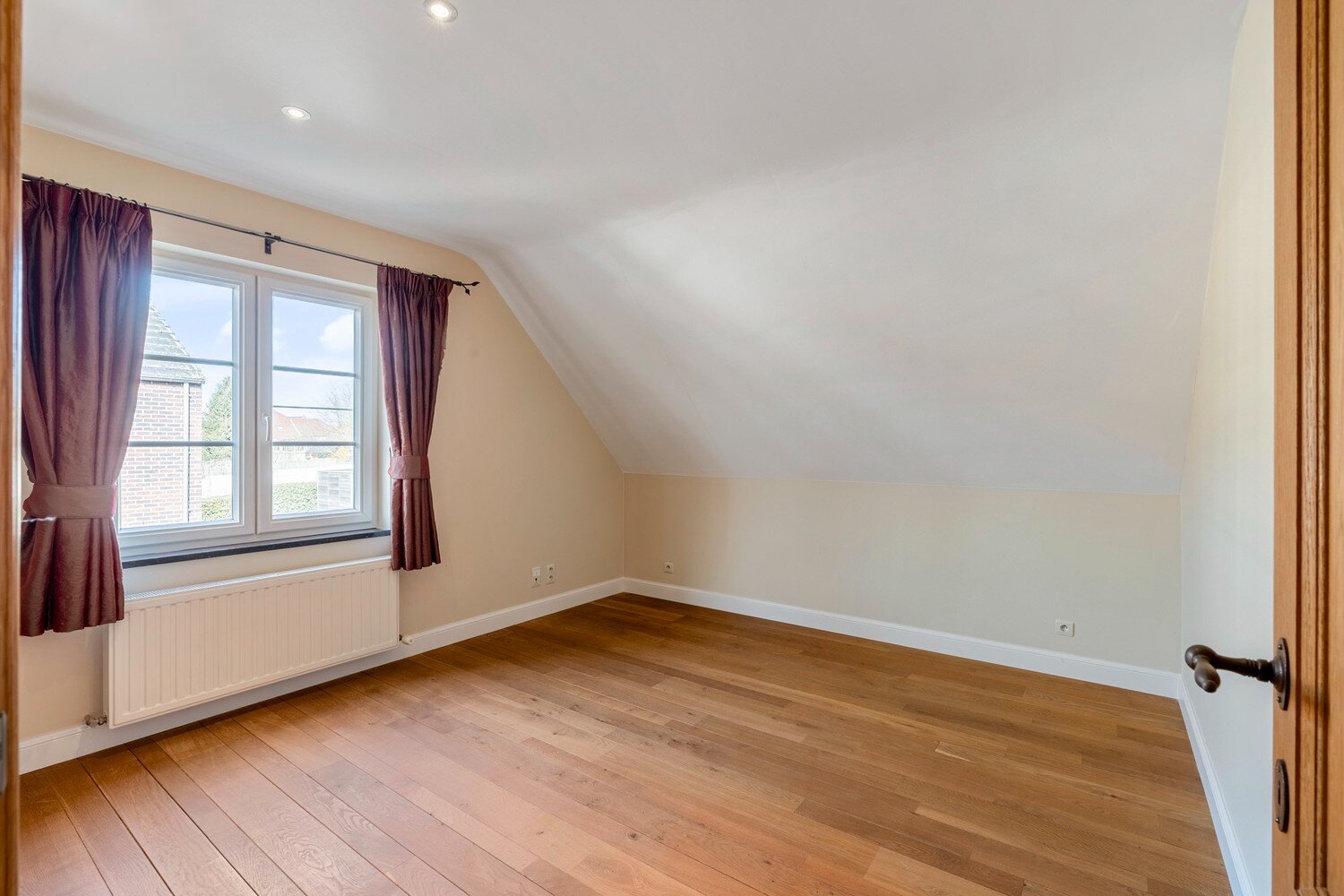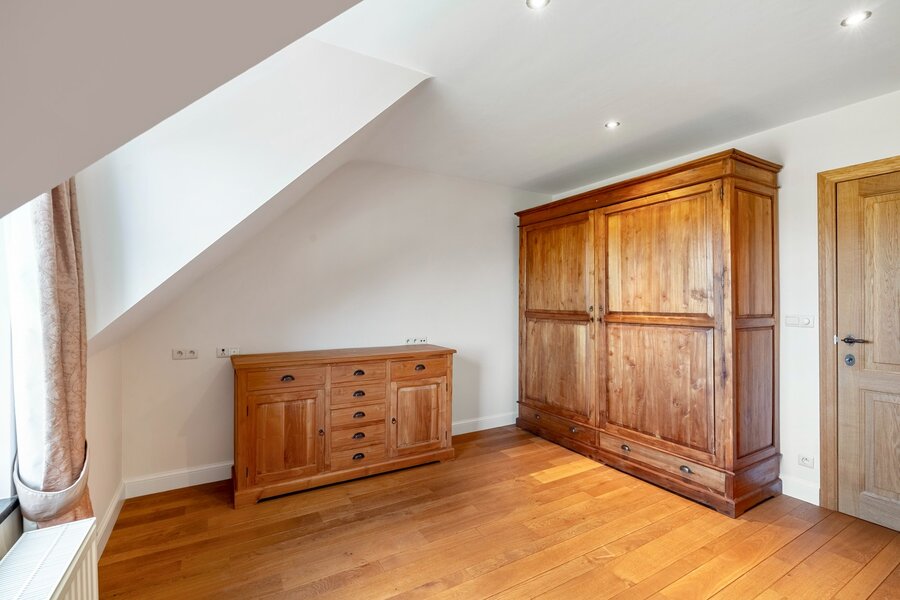 Op de bovenverdieping treft u vier slaapkamers, allen met eiken parket. De master bedroom beschikt over een ruime privé dressing. De badkamer is voorzien van een dubbele wastafel, toilet en douche.