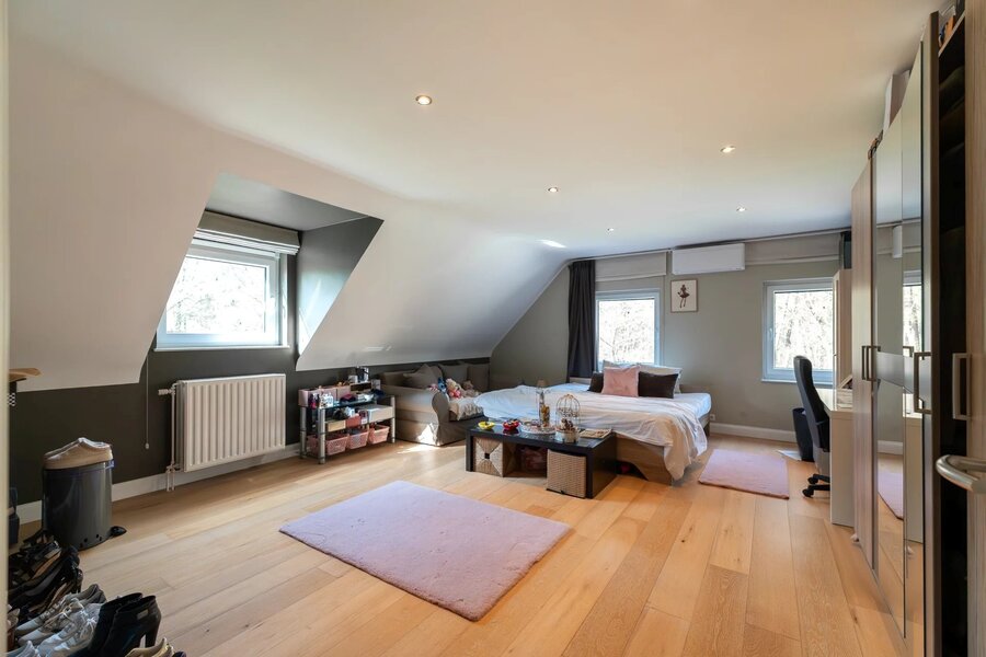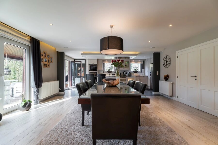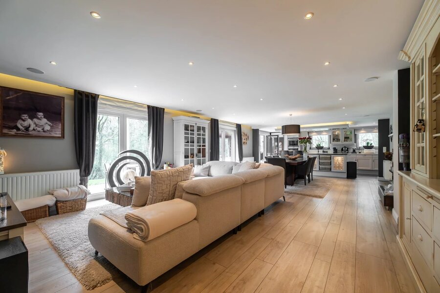 OPTION - Nichée dans le Bois du Hautmont, sur un terrain de fond arboré de ± 76 ares, villa brabançonne entièrement rénovée en 2024 développant ± 583m² selon PEB. Elle comprend 4 chambres, 2 salles de bains ainsi qu’un appartement indépendant de ± 100 m² avec 2 chambres et entrée privative.