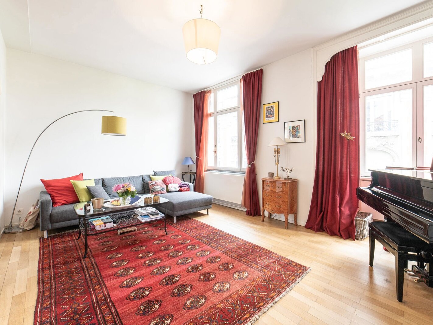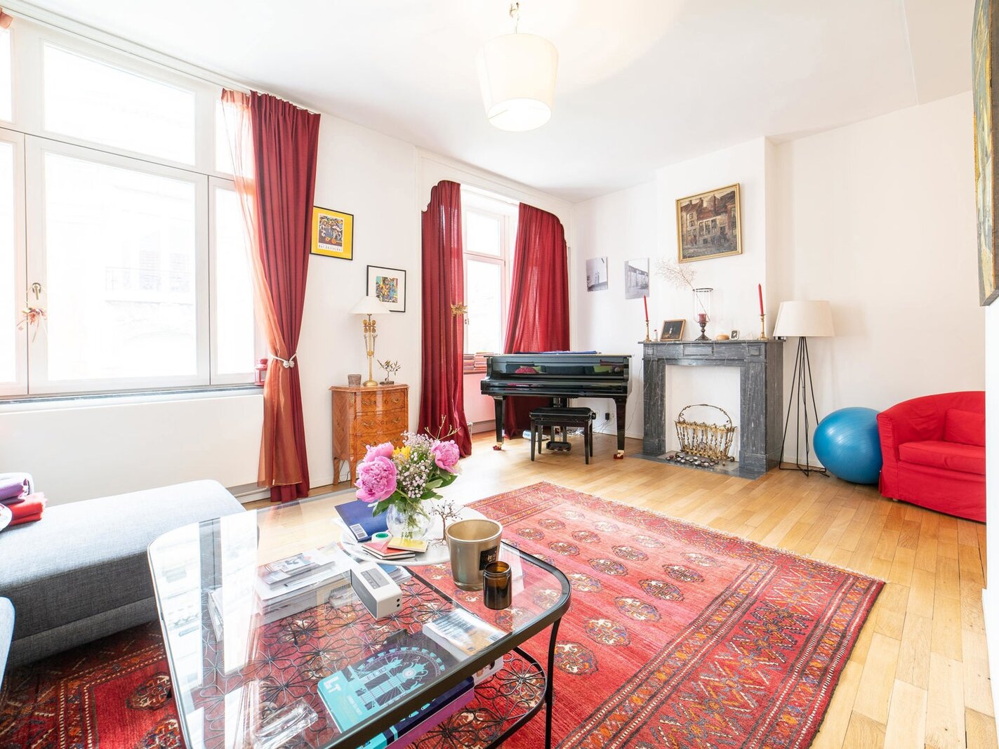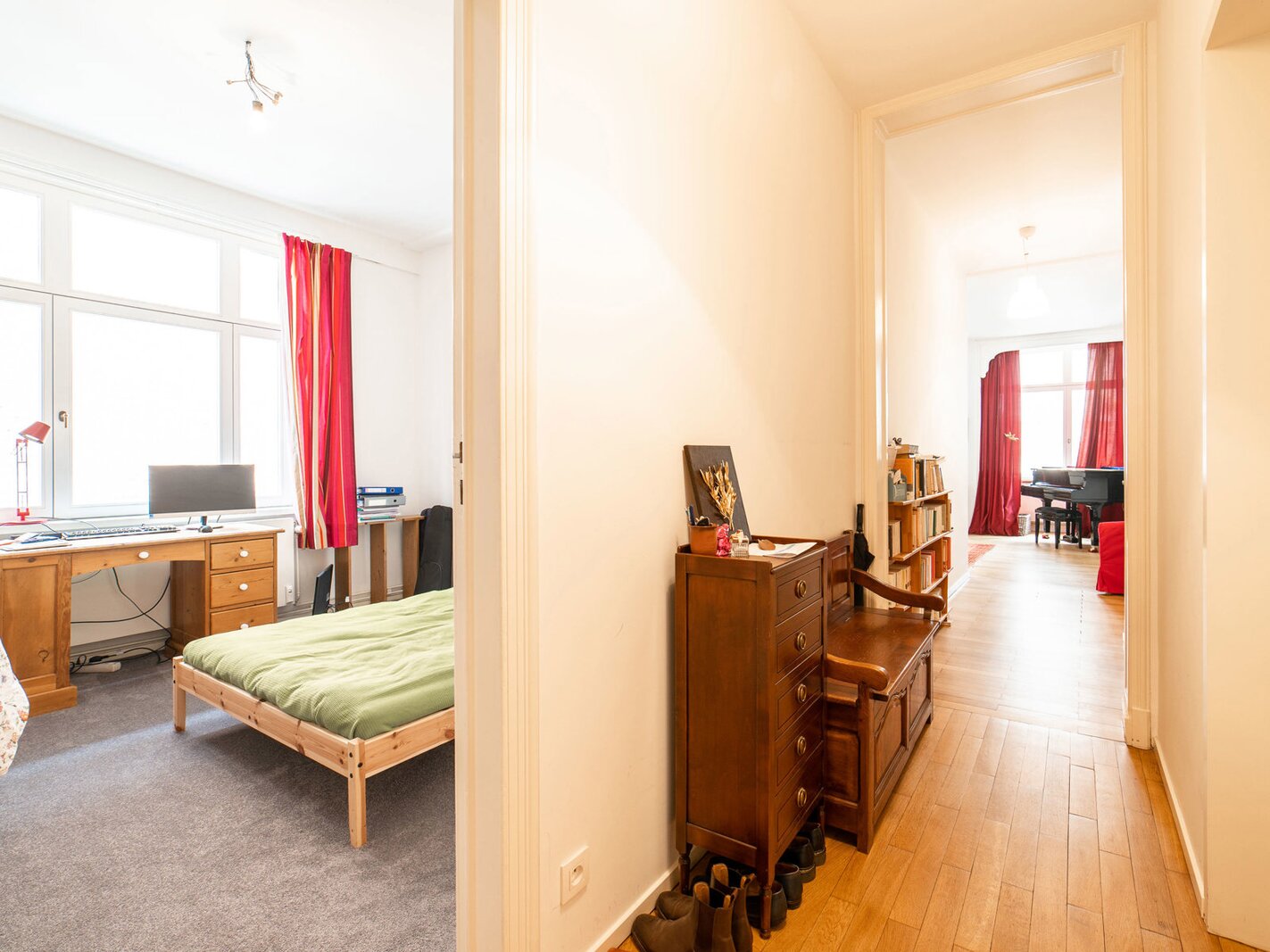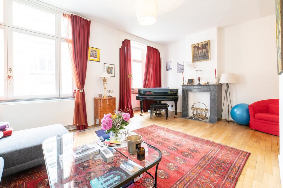 Sis dans un immeuble de caractère qui a fait l'objet d'une rénovation complète, bel appartement deux chambres et deux salles d'eau de 113 m2 (mesures PEB) offrant énormément de lumière. On y retrouve de beaux matériaux (parquet au sol), une cuisine super-équipée ainsi que deux belles chambres avec chacune leur salle d'eau.