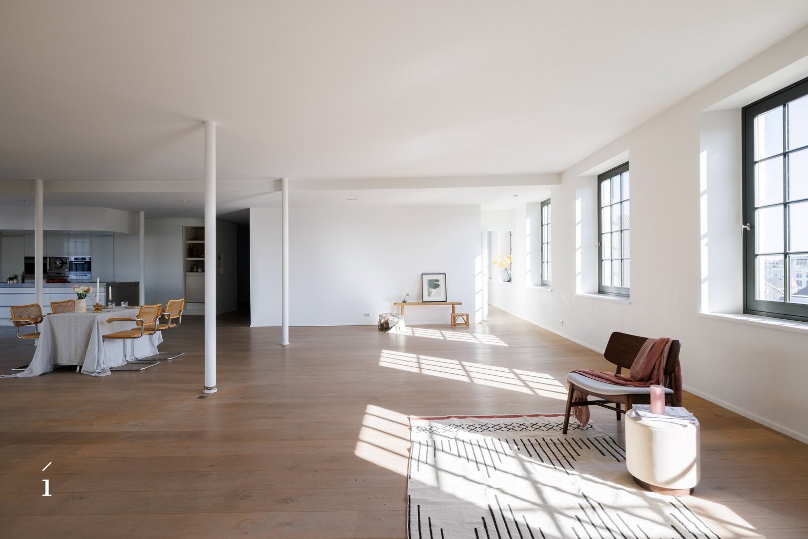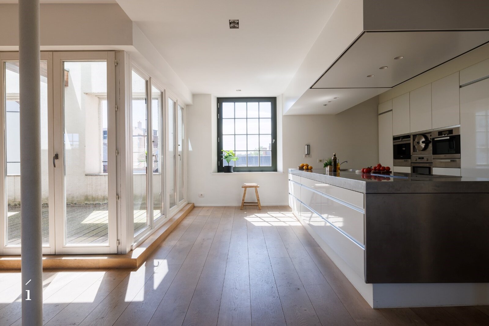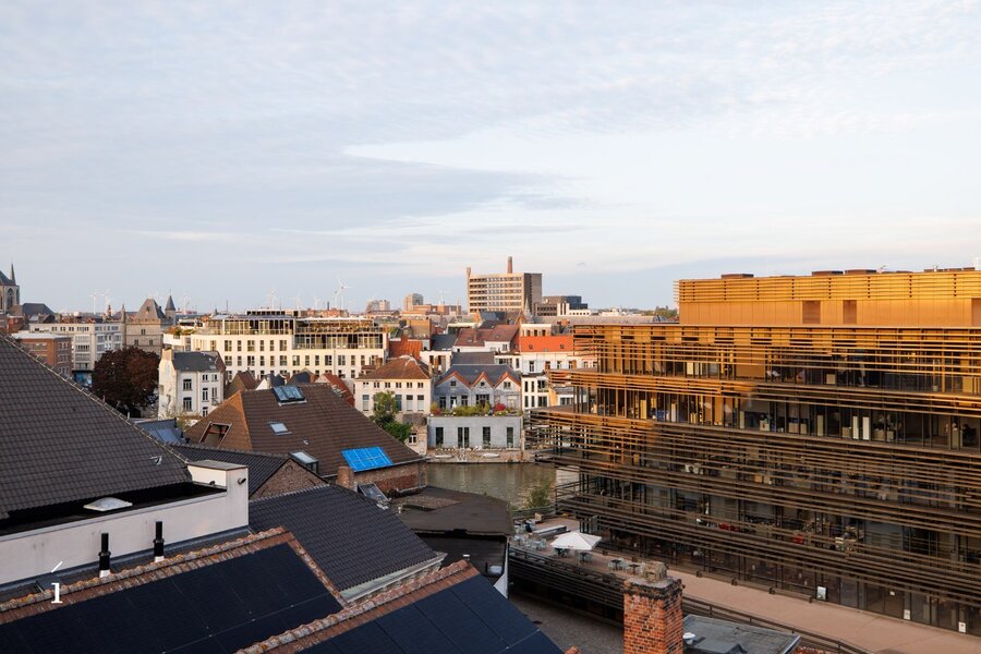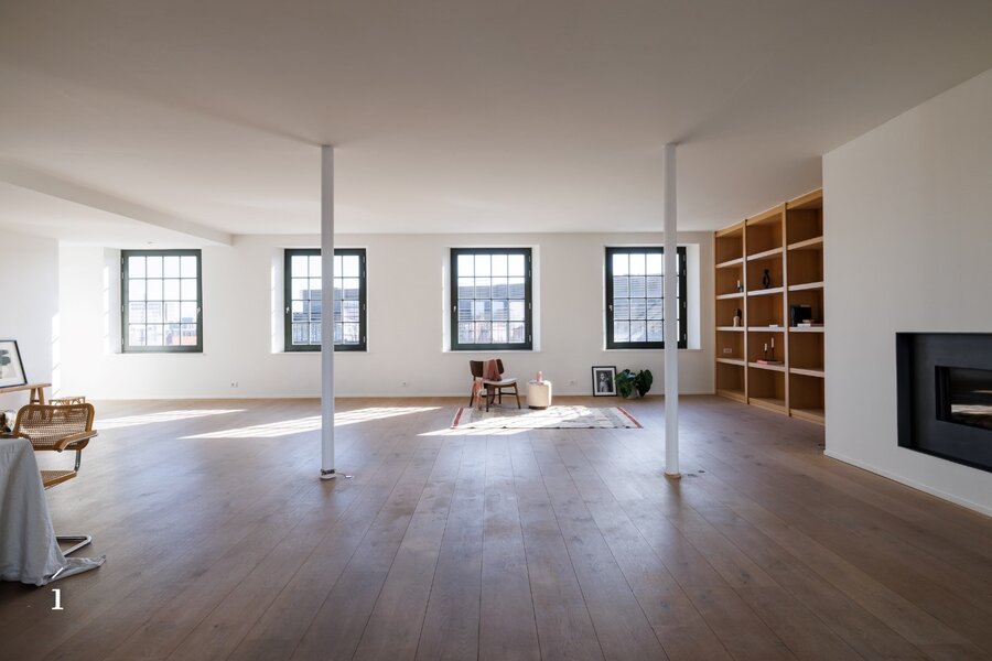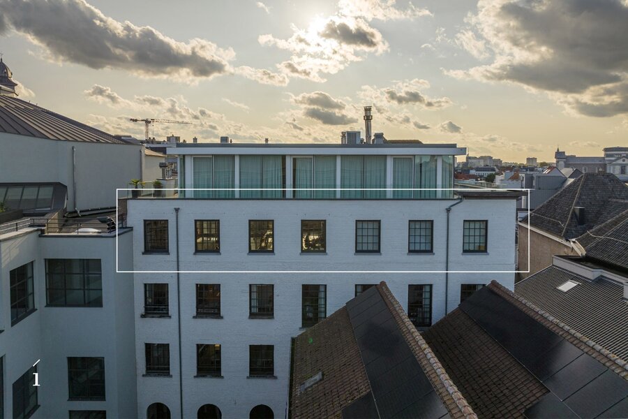 In het hart van de stad, midden in het bruisende centrum, bevindt zich deze unieke loft met 3 slaapkamers en 3 badkamers op de vijfde verdieping met unieke zichten over de stad. De riante en lichtrijke loft bevindt zich in de voormalige Katoenspinnerij De Gandt-Vander Schueren, een origineel gebouw uit 1956. Deze eigendom straal nog steeds een industriële en eigentijdse sfeer uit. In 2008 werd het gebouw omgevormd tot zes luxe lofts, waarbij de authenticiteit en charme behouden zijn gebleven.