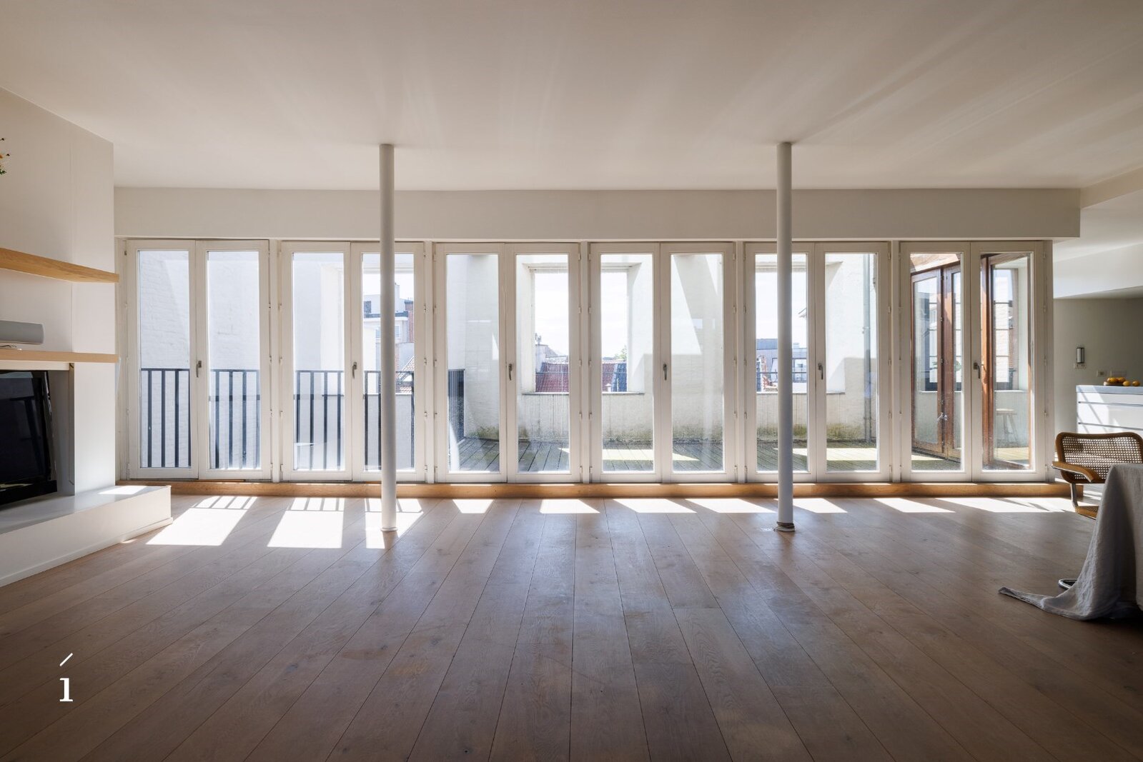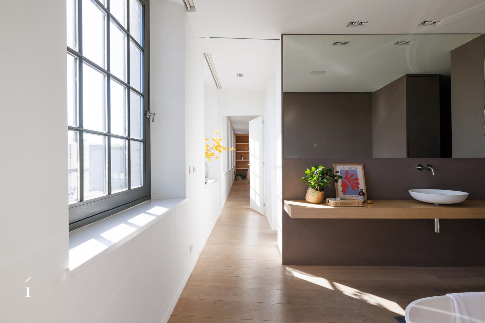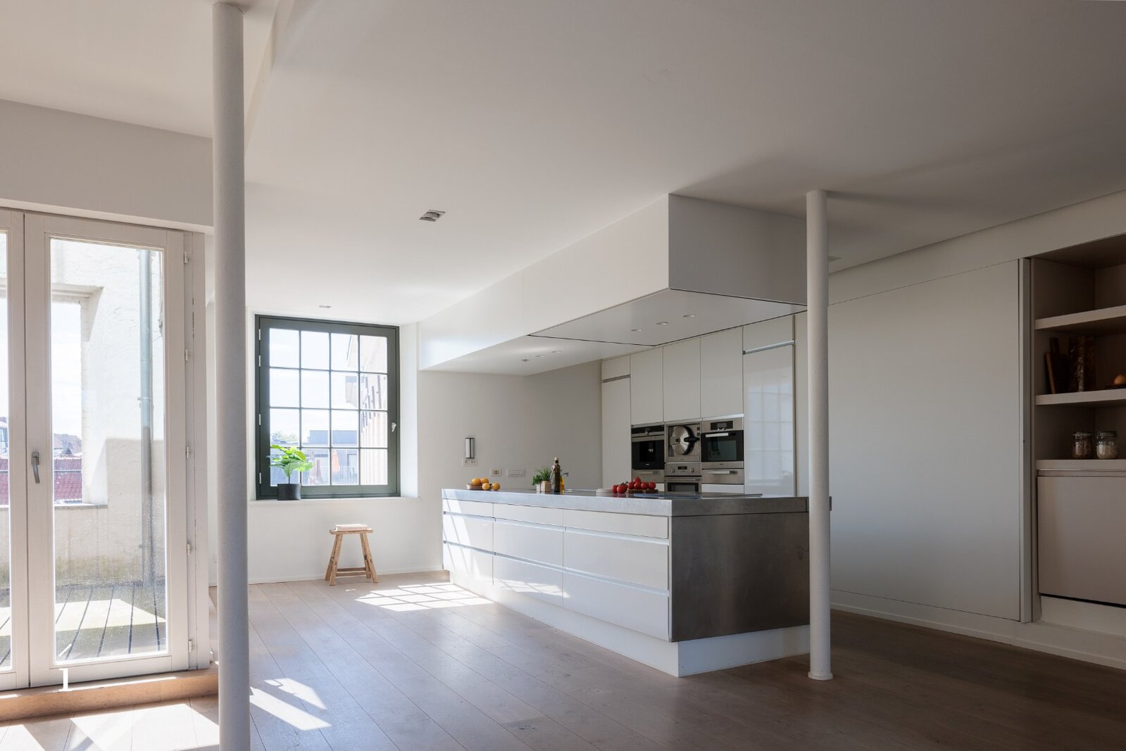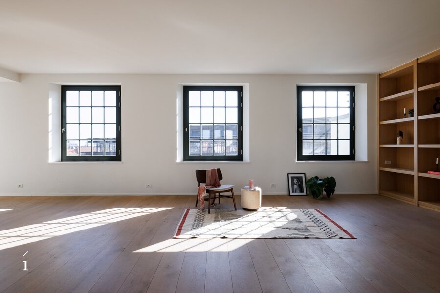 In het hart van de stad, midden in het bruisende centrum, bevindt zich deze unieke loft met 3 slaapkamers en 3 badkamers op de vijfde verdieping met unieke zichten over de stad. De riante en lichtrijke loft bevindt zich in de voormalige Katoenspinnerij De Gandt-Vander Schueren, een origineel gebouw uit 1956. Deze eigendom straal nog steeds een industriële en eigentijdse sfeer uit. In 2008 werd het gebouw omgevormd tot zes luxe lofts, waarbij de authenticiteit en charme behouden zijn gebleven.