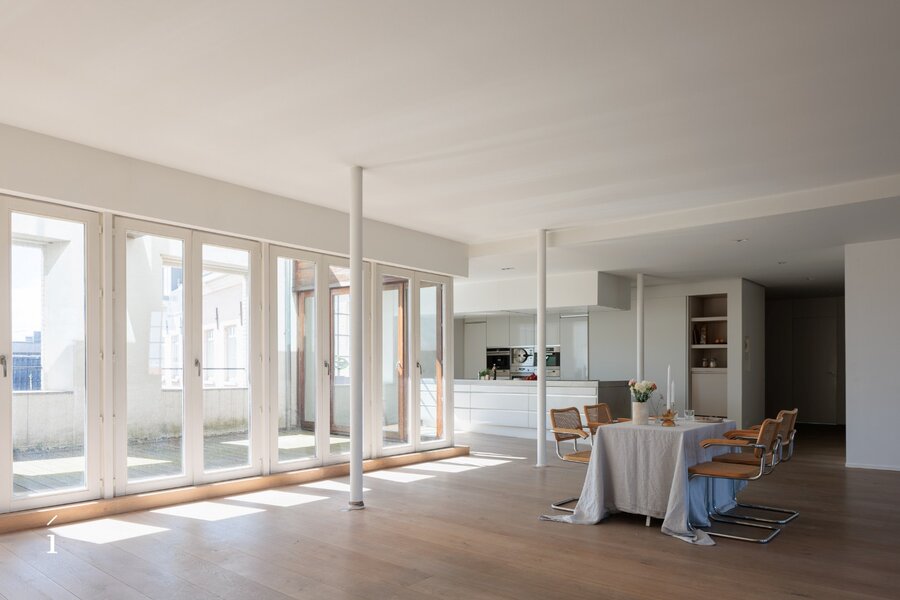 Deze open ruimte, voorzien van een moderne keuken met voldoende kastruimte, sluit naadloos aan op het ruim zuidgericht terras. Hier kunt u heerlijk ontspannen en genieten.De loft beschikt over drie slaapkamers, waaronder een master bedroom met een ensuite dressing en ingerichte badkamer. De overige twee slaapkamers zijn elk voorzien van een eigen stijlvolle douchekamer met lavabo. Voor uw comfort is er een ondergrondse staanplaats beschikbaar, verplicht aan te kopen voor een meerprijs € 30.000. De staanplaats is toegankelijk via een beveiligde inrijpoort. Industriële charme. Het is een ware synergie van luxe, comfort en industriële charme. De syndicale inlichtingen zijn te verkrijgen via mail. Kortom, de loft biedt een uitzonderlijke woonervaring.
