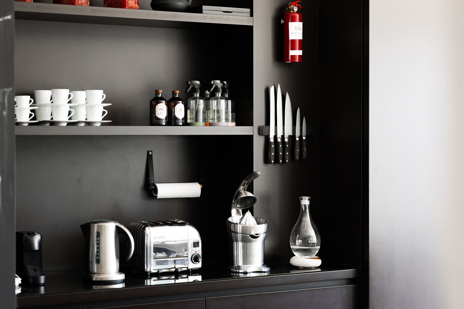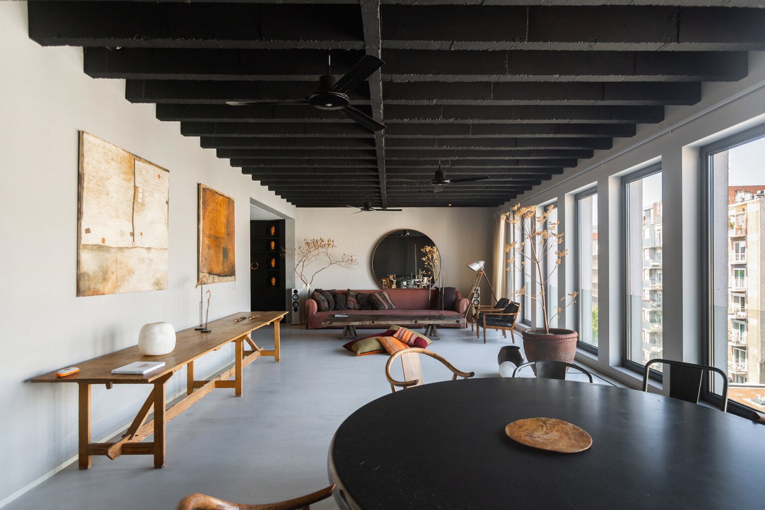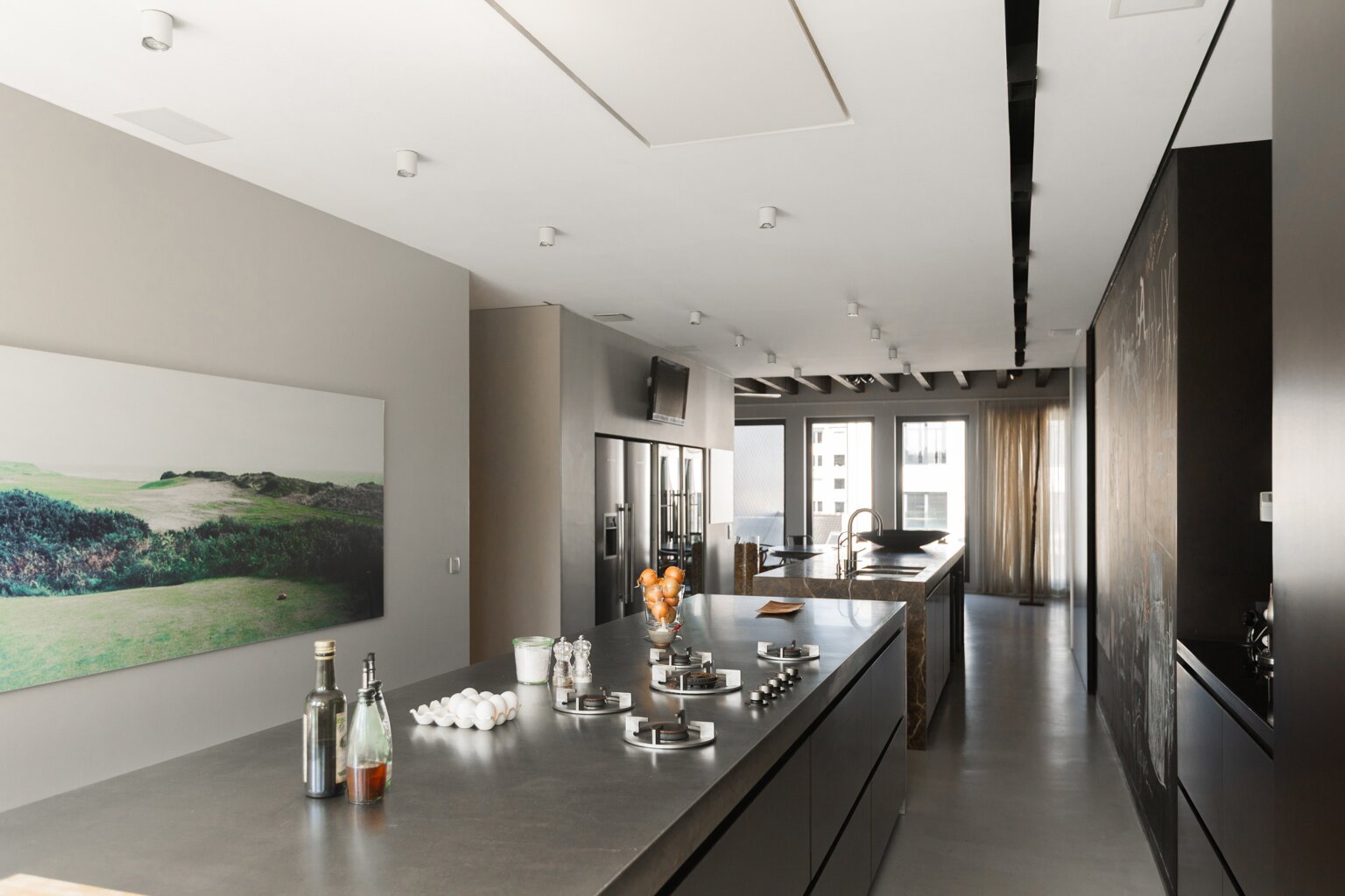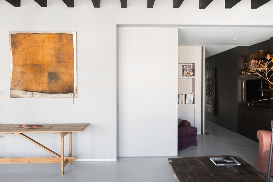 En empruntant l'ascenseur du parking souterrain jusqu'à +6, vous entrez directement dans cet appartement à couper le souffle. En 2009, cet endroit a été entièrement rénové selon le concept inspirant du loft wabi sabi.