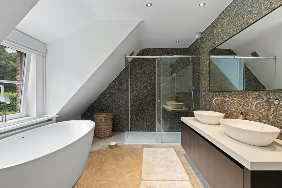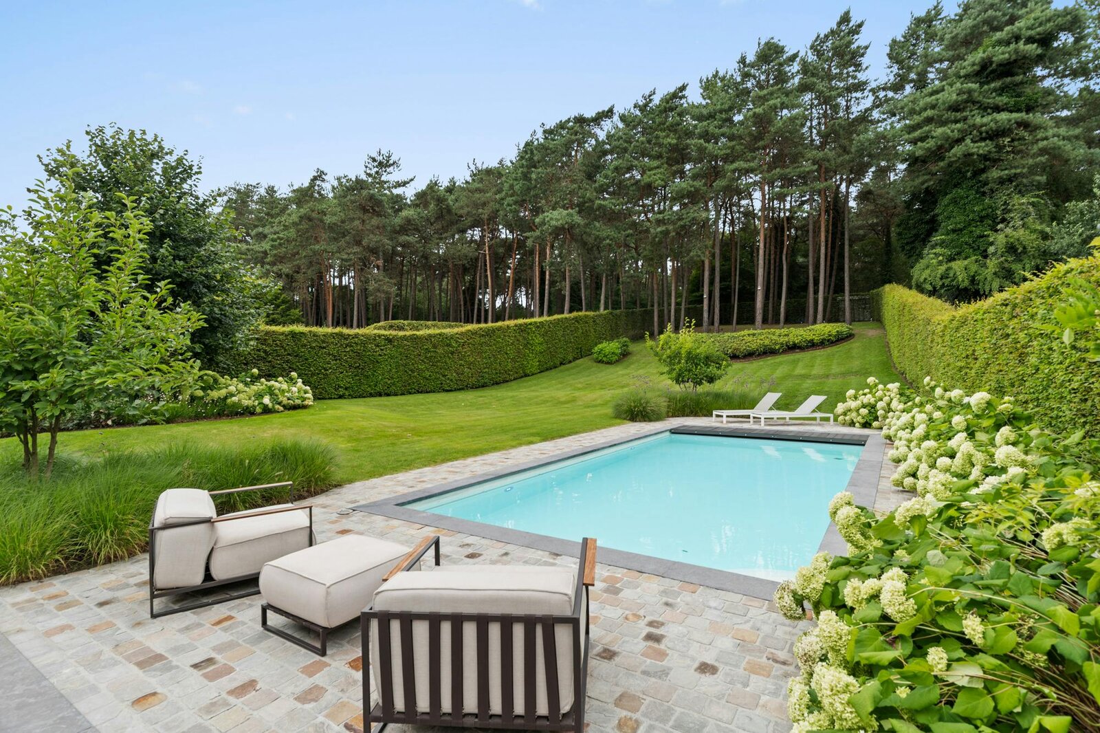 Le jardin est un véritable paradis : aménagé de manière professionnelle, avec une spacieuse terrasse en pierre naturelle et une piscine qui vous invite à profiter des longues journées d'été en toute tranquillité. Grâce à son orientation, vous pourrez profiter du soleil de l'après-midi jusqu'à tard le soir. À l'arrière, la parcelle borde la forêt, ce qui garantit une vue idyllique et un maximum d'intimité.