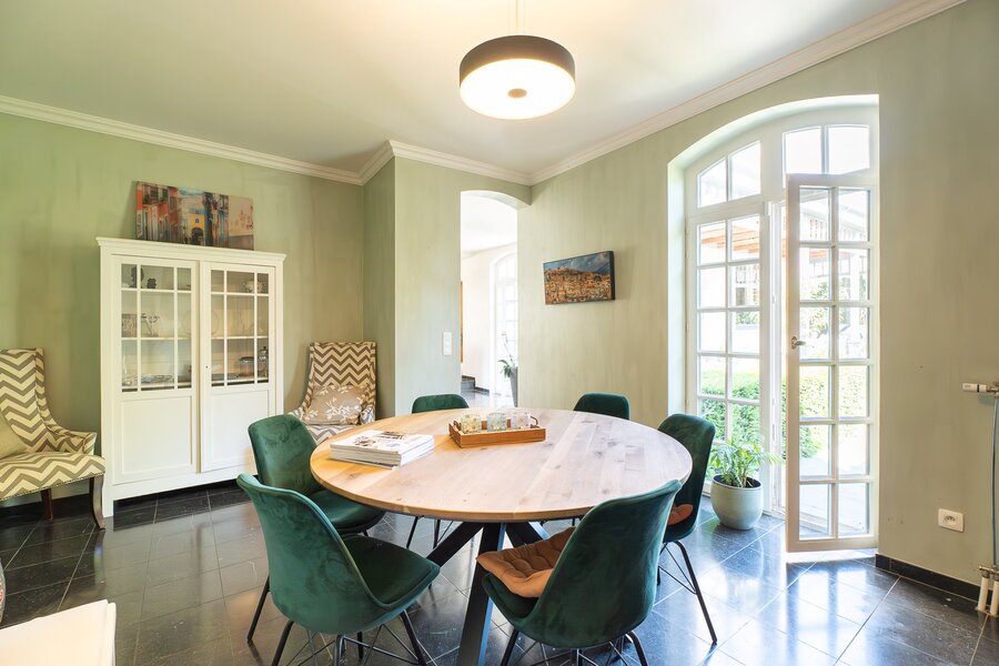 Aspects techniques : PEB C, chauffage central au gaz, toiture ardoise rénovée en 2018, cave voûtée. Stationnement aisé dans la propriété. Idéal profession libérale médicale ou juridique.