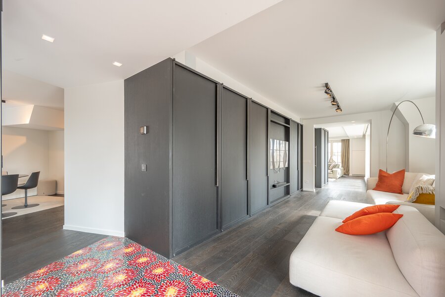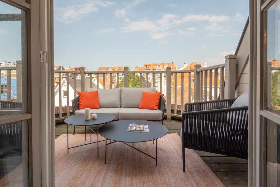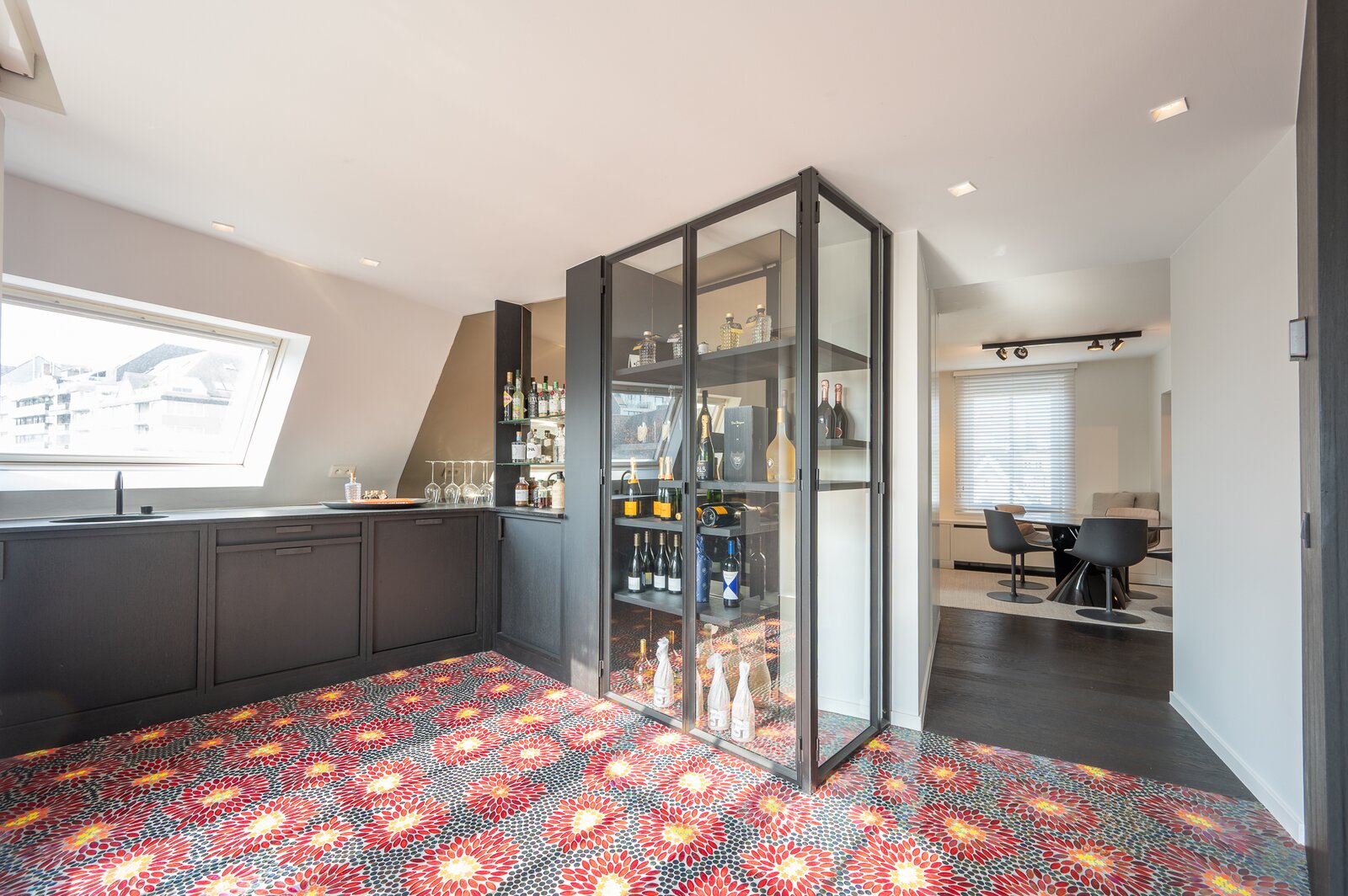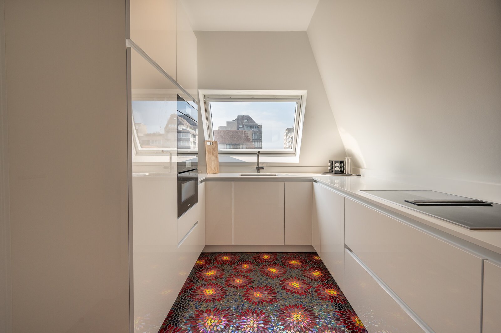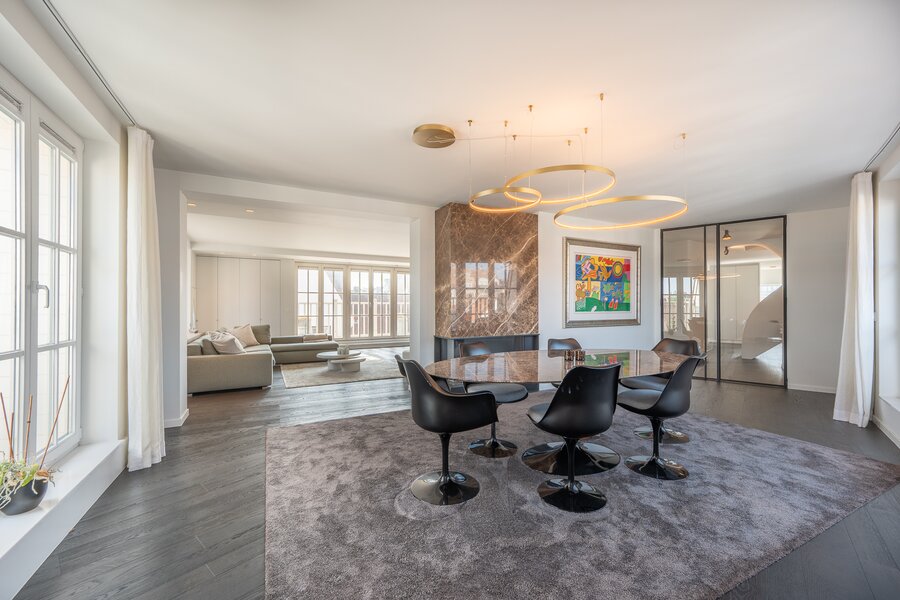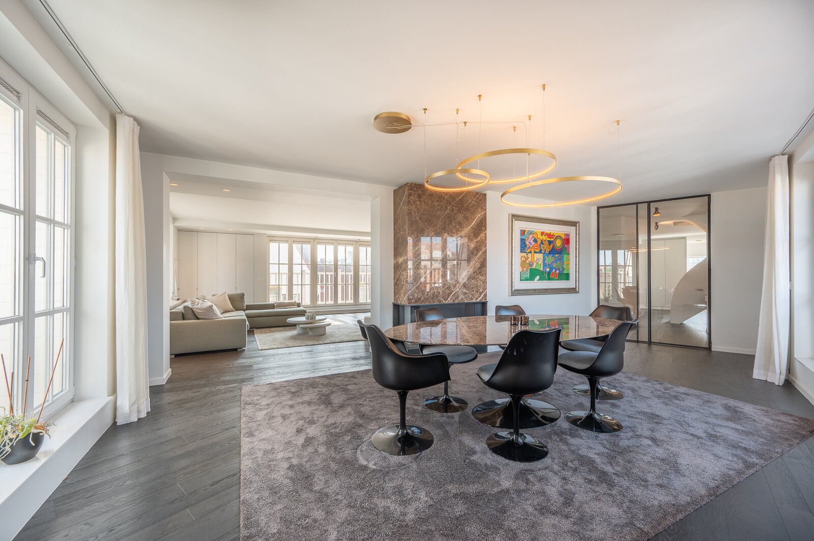 Deze unieke villa-penthouse van 298 m² is gelegen in mooi kleinschalig gebouw aan het Albertstrand en bestaat uit: inkomhall met veiligheidsdeur, vestiaire en gastentoilet, riante eetplaats met open haard, leeshoek, ruim salon met ingemaakte kasten in eikfineer, gezellige TV-plaats, luxueus ingerichte bar met vaatwas, volledig ingerichte keuken met alle MIELE-toestellen, bergplaats, cozy eetplaats aan de keuken, 5 slaapkamers met eigen badkamer, apart toilet, wasplaats. Het appartement heeft een prachtig 360° zicht waardoor er veel zon en lichtinval is. Elke ruimte grenst aan een van de 6 terrasjes waardoor u op elk moment van de dag uw geliefkoosde plaatsje in de zon of schaduw vindt. Automatische zonnescreens. Airconditioning. Het appartement werd recent vernieuwd met hoogwaardige materialen (parketvloeren, unieke glasmozaïek vloeren, ingemaakte kasten in eikfineer,...). en is instapklaar. De aankoop van een ondergrondse autostaanplaats is mogelijk. Een appartement met deze bewoonbare oppervlakte (298 m²), 5 slaapkamers en 5 badkamers is een unieke vondst op deze locatie. Voor bijkomende inlichtingen of een plaatsbezoek kan u contact nemen via stef.proost@icloud.com of op 0475/83.83.00.