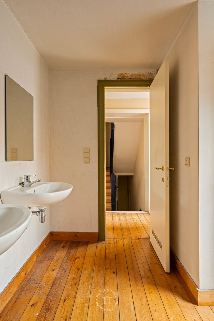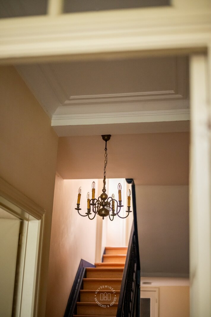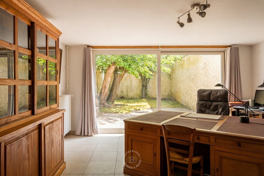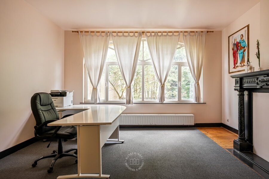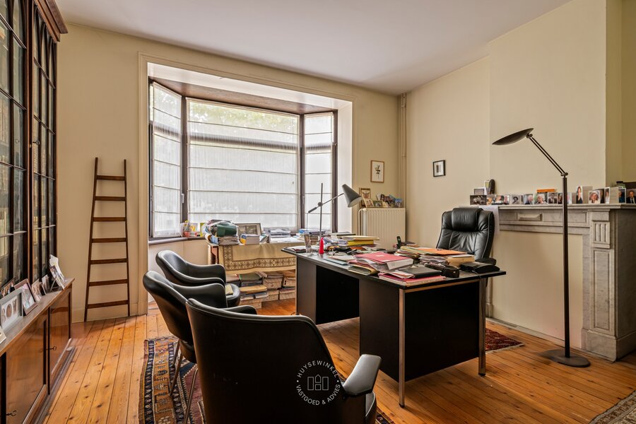 Bij het binnenkomen valt meteen de authentieke inkomhal op met zijn hoge plafonds die het charmante karakter van de woning versterken. De woning werd doorheen de jaren gebruikt als kantoor en biedt vandaag een prachtige basis voor wie wil renoveren en volledig naar eigen smaak wil inrichten.