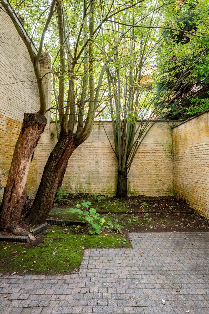 Het gelijkvloers omvat meerdere ruime kamers en een compacte keuken, ideaal om om te vormen tot een open leefruimte met keuken en eetkamer. De achterbouw herbergt bovendien twee ruimtes boven elkaar met toegang tot de zuidwestgerichte tuin.