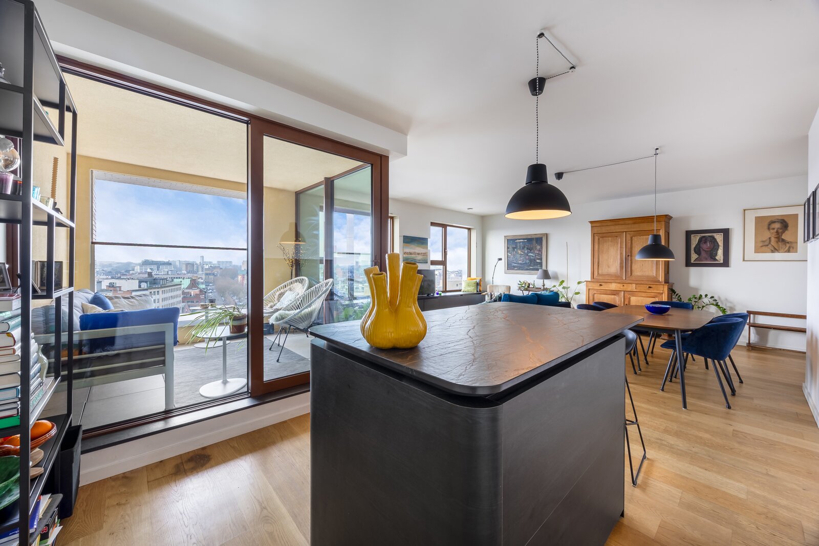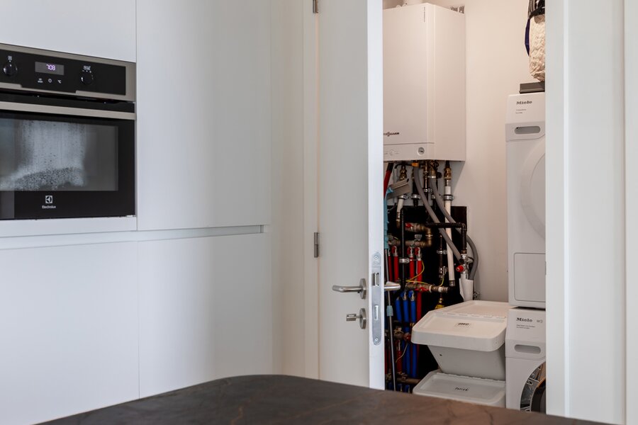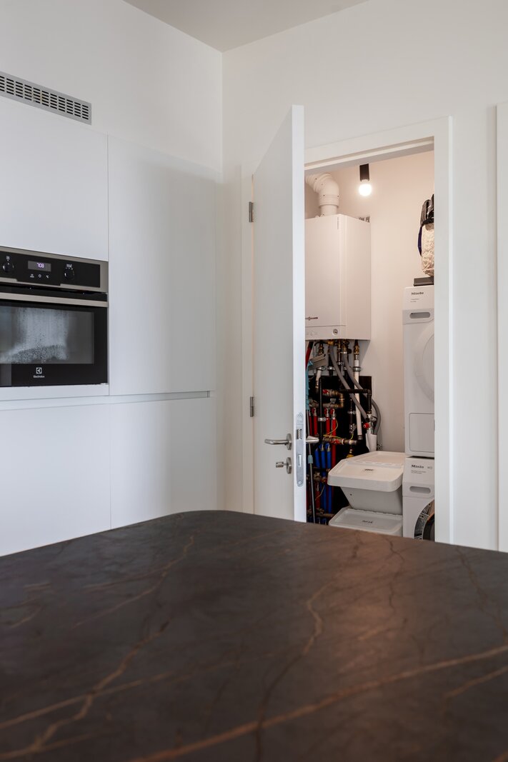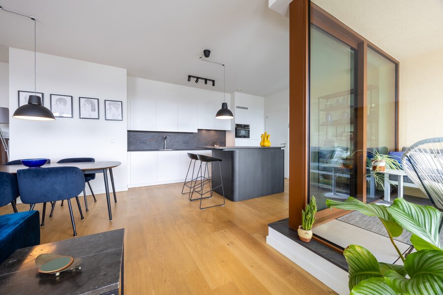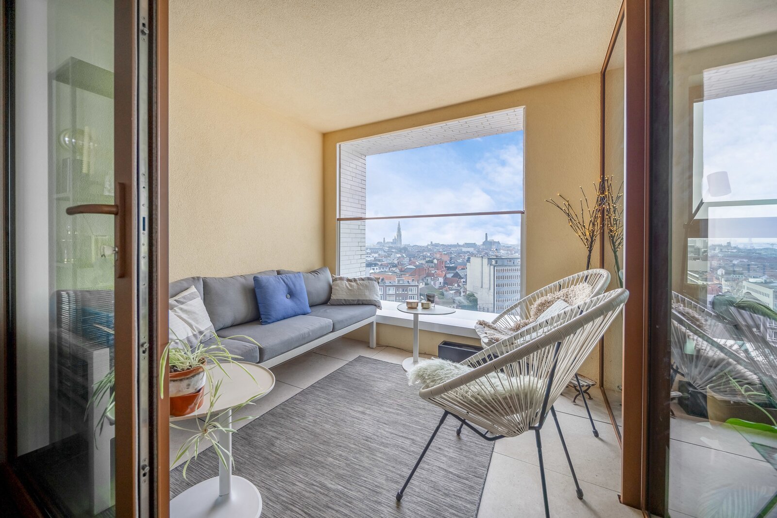 Gelegen op de 11e verdieping van een nieuw gebouw is een prachtig uitzicht over de stad een evidentie. Een overdekt terras maakt dat je ook buiten over de seizoenen heen kan genieten van het zicht.