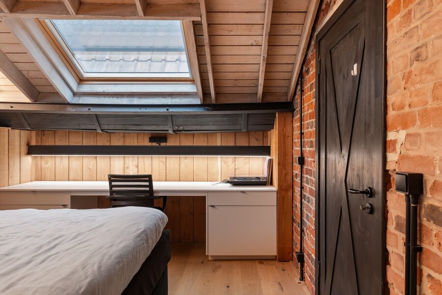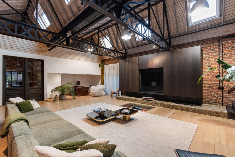 Op zoek naar een uitzonderlijk eigendom waar karakter, ruimte, privacy en functionaliteit samenkomen? Dit voormalige fabriekspand werd in 2022 volledig gerenoveerd met hoogwaardige en duurzame materialen, met maximaal respect voor de authentieke industriële elementen. Het resultaat is een indrukwekkend loftgebouw met loods, perfect voor wie wonen en werken wil combineren. Karaktervolle architectuur met loftuitstraling Het ruime en karaktervolle fabrieksgebouw ademt geschiedenis en stijl. Originele industriële accenten werden behouden en harmonieus geïntegreerd in een hedendaags woonconcept. Hoge plafonds, robuuste structuren en open volumes zorgen voor een unieke beleving. Bij het betreden van het pand komt u in een imposante inkomhal die meteen de toon zet: ruim, stijlvol en met een uitgesproken loftgevoel. Dit uniek eigendom omvat verder: Bureel of cinema-/multifunctionele kamer Een royale leefruimte met design tv-wand Prachtig ingerichte open keuken met hoogwaardige Miele-toestellen Toegang tot het ruim terras, zonneterras 4 volwaardige slaapkamers, allen voorzien van maatwerk inbouwkasten 2 moderne badkamers Volledig onderkelderd met: Wasplaats Bergingen Ontspanningsruimte Gezellige bar / mancave met geïntegreerde wijnkelder Extra troef: Loods van 200 m² De ruime loods biedt tal van mogelijkheden: atelier, opslagruimte, zelfstandige activiteit, hobbyruimte,... Ideaal voor ondernemers of creatieve professionals. Centraal gelegen met vlotte verbinding naar autosnelwegen en vlakbij stad Kortrijk.