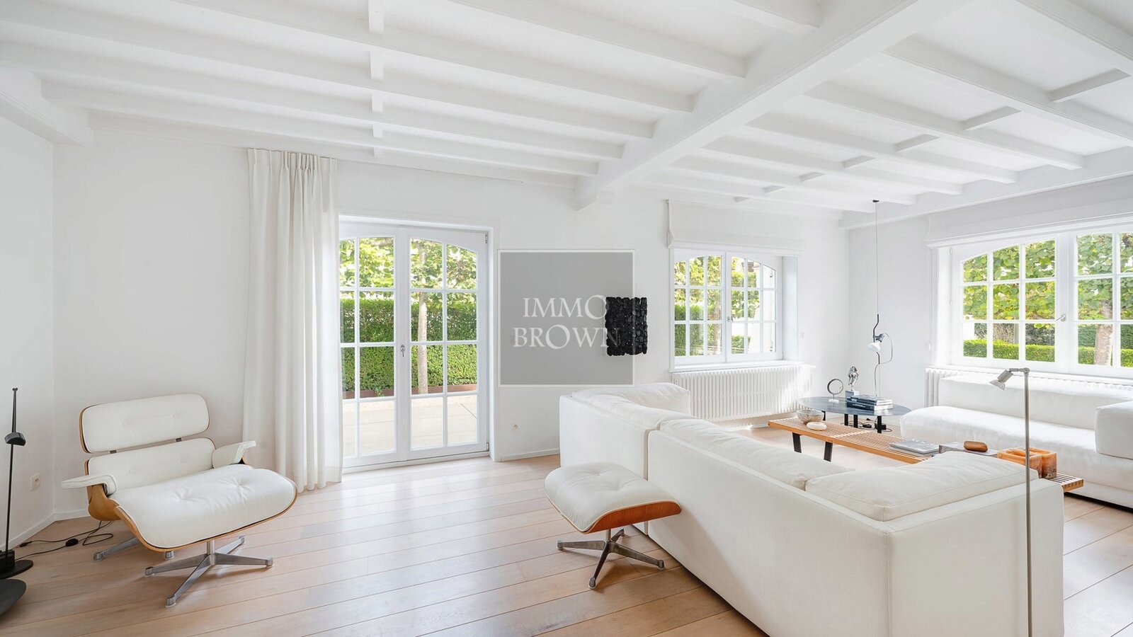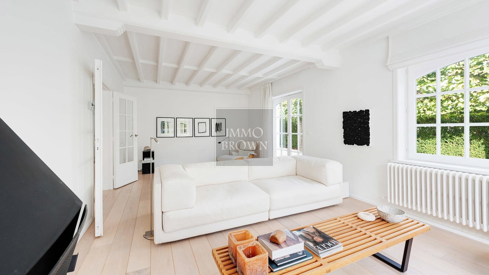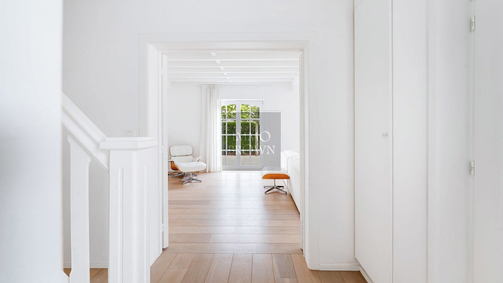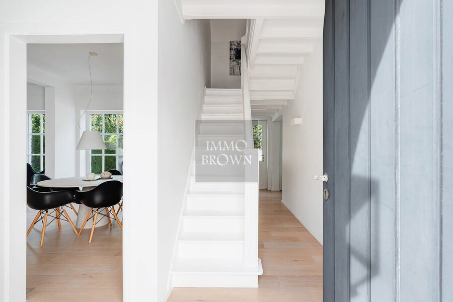Le hall d’entrée avec un élégant escalier mène à un séjour lumineux avec accès direct à la terrasse. Une salle à manger séparée et un second salon cosy offrent un espace idéal pour accueillir famille et invités.