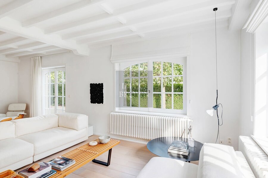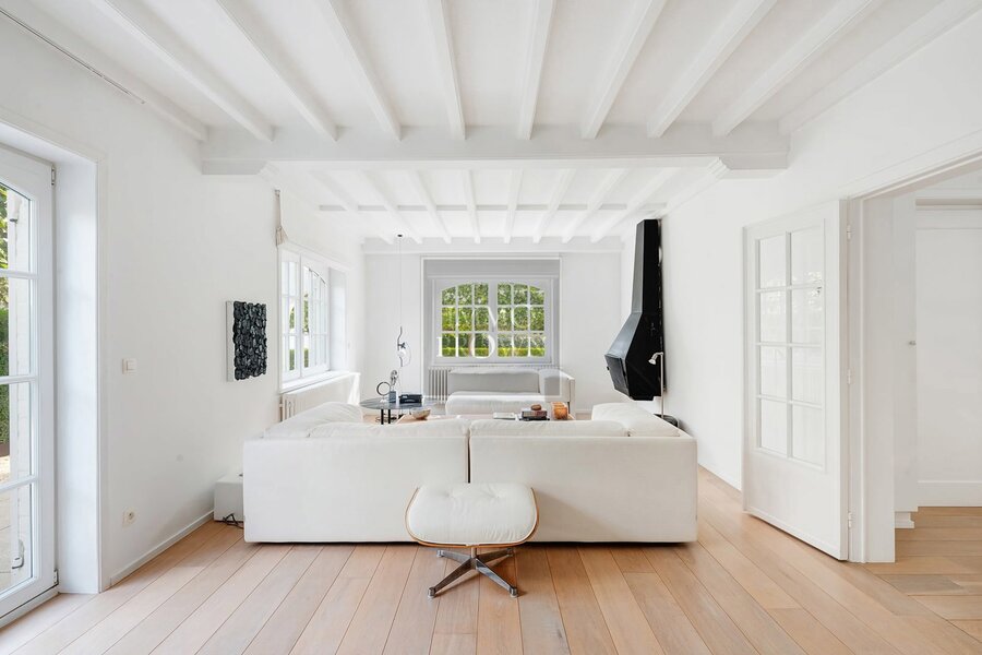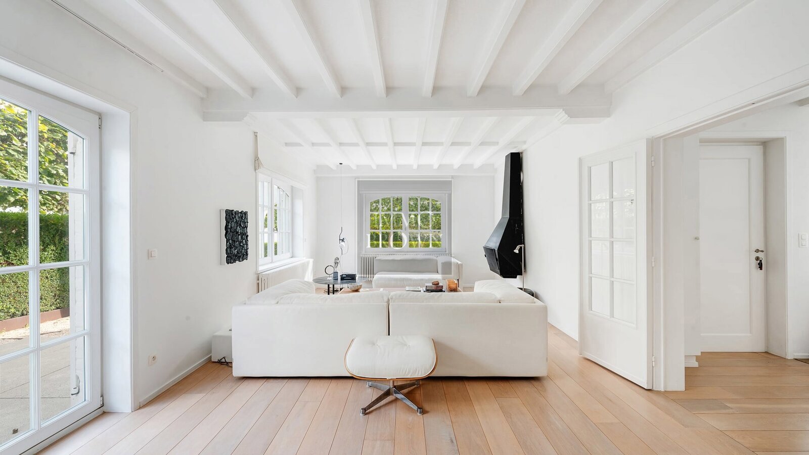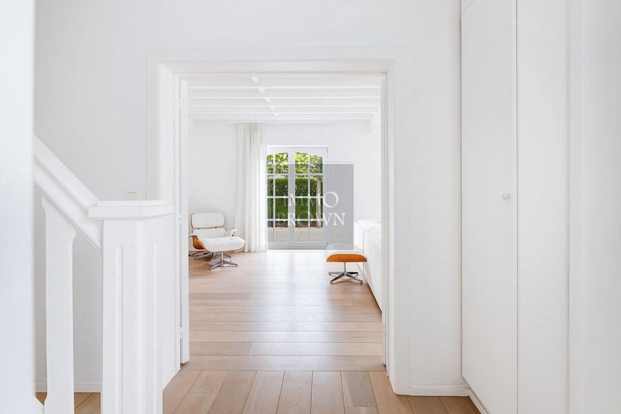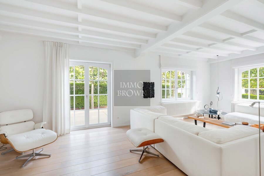 Le hall d’entrée avec un élégant escalier mène à un séjour lumineux avec accès direct à la terrasse. Une salle à manger séparée et un second salon cosy offrent un espace idéal pour accueillir famille et invités.