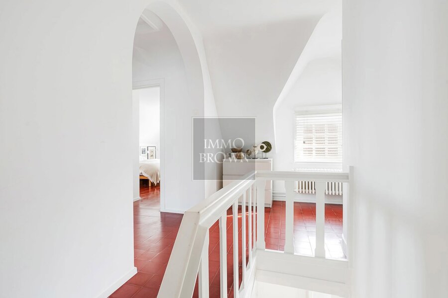 La maison respire le caractère et l’authenticité, avec un aménagement intérieur de bon goût, respectueux de l’architecture typique du quartier de villas pittoresques.