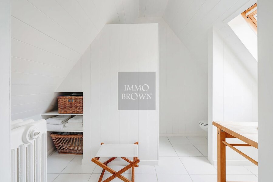 À l’étage, vous trouverez trois grandes chambres, une salle de bain séparée ainsi qu’une deuxième salle de douche entièrement aménagée.