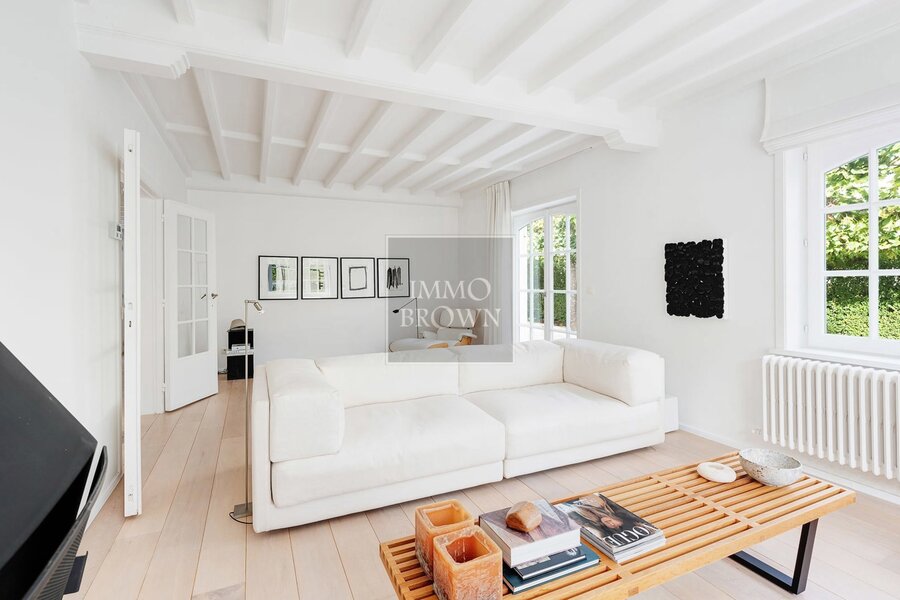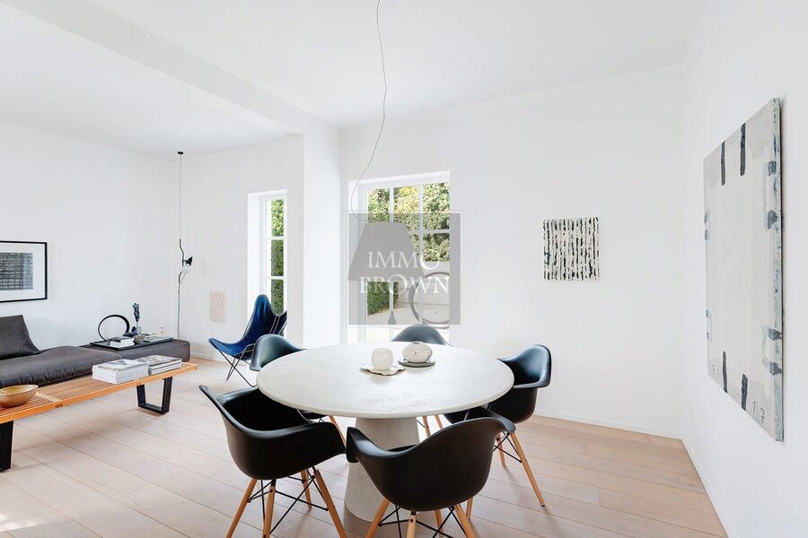 Le hall d’entrée avec un élégant escalier mène à un séjour lumineux avec accès direct à la terrasse. Une salle à manger séparée et un second salon cosy offrent un espace idéal pour accueillir famille et invités.