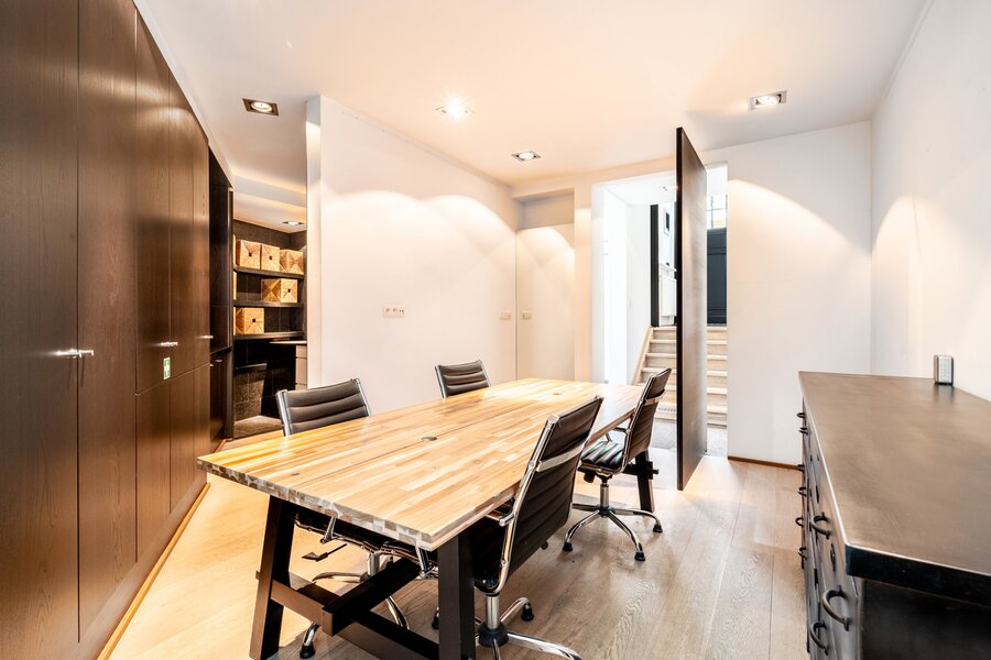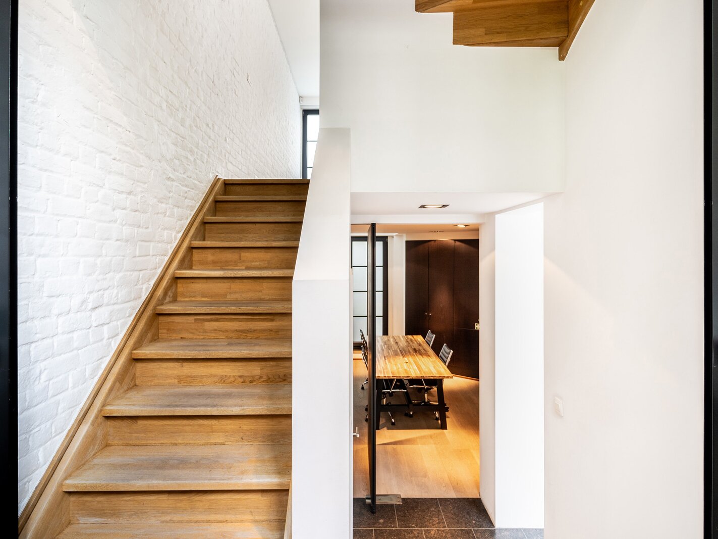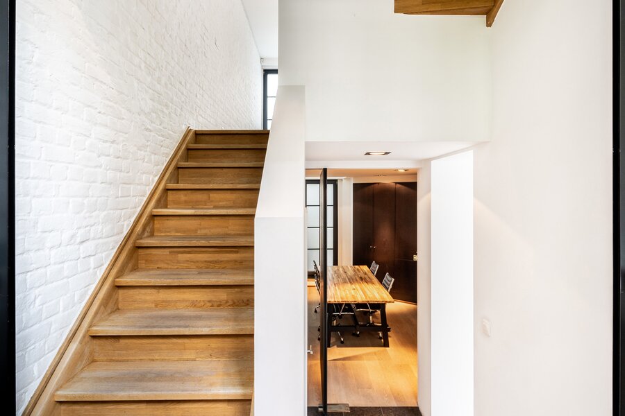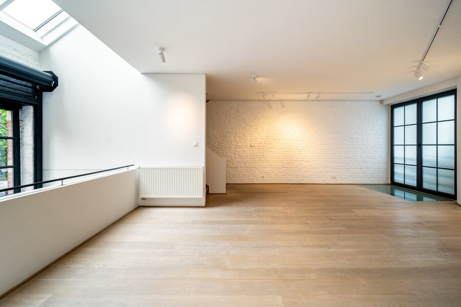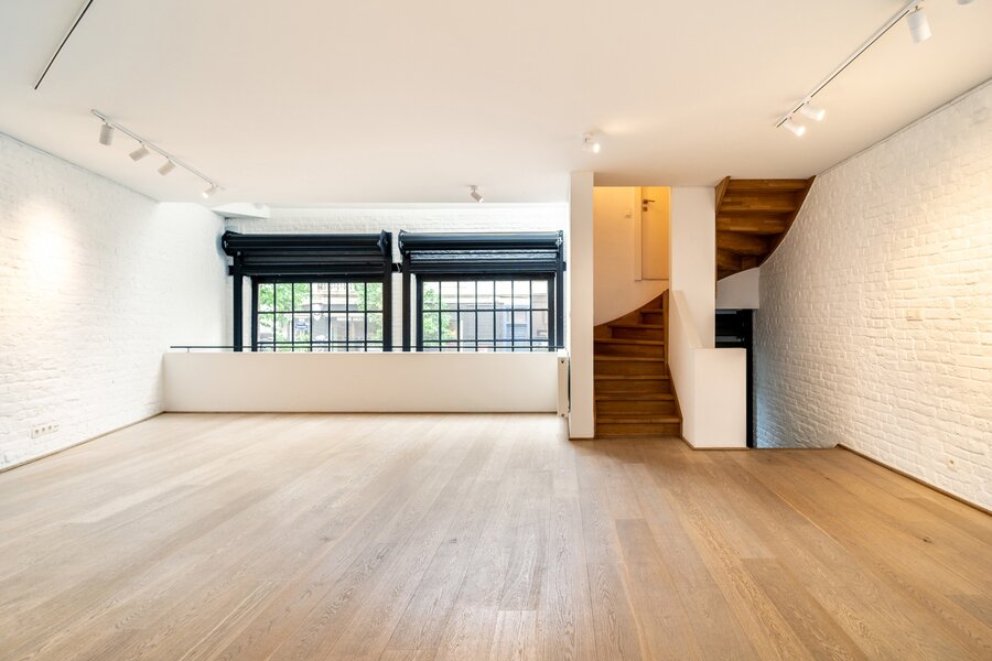 La maison, anciennement aménagée en galerie d’art, s’ouvre sur le hall d’entrée et la cage d’escalier qui mène à l’espace cuisine, à la salle à manger et à un espace bureau. A l’étage supérieur un vaste espace séjour de style loft avec plancher en chênes et mur de briques baigné de lumière grâce aux larges fenêtres en façade. Au deuxième étage, une chambre et une salle de douche complètent l’ensemble. Un bien atypique qui peut être utilisé en habitation, profession libérale ou espace d'exposition dans une localisation très recherchée.