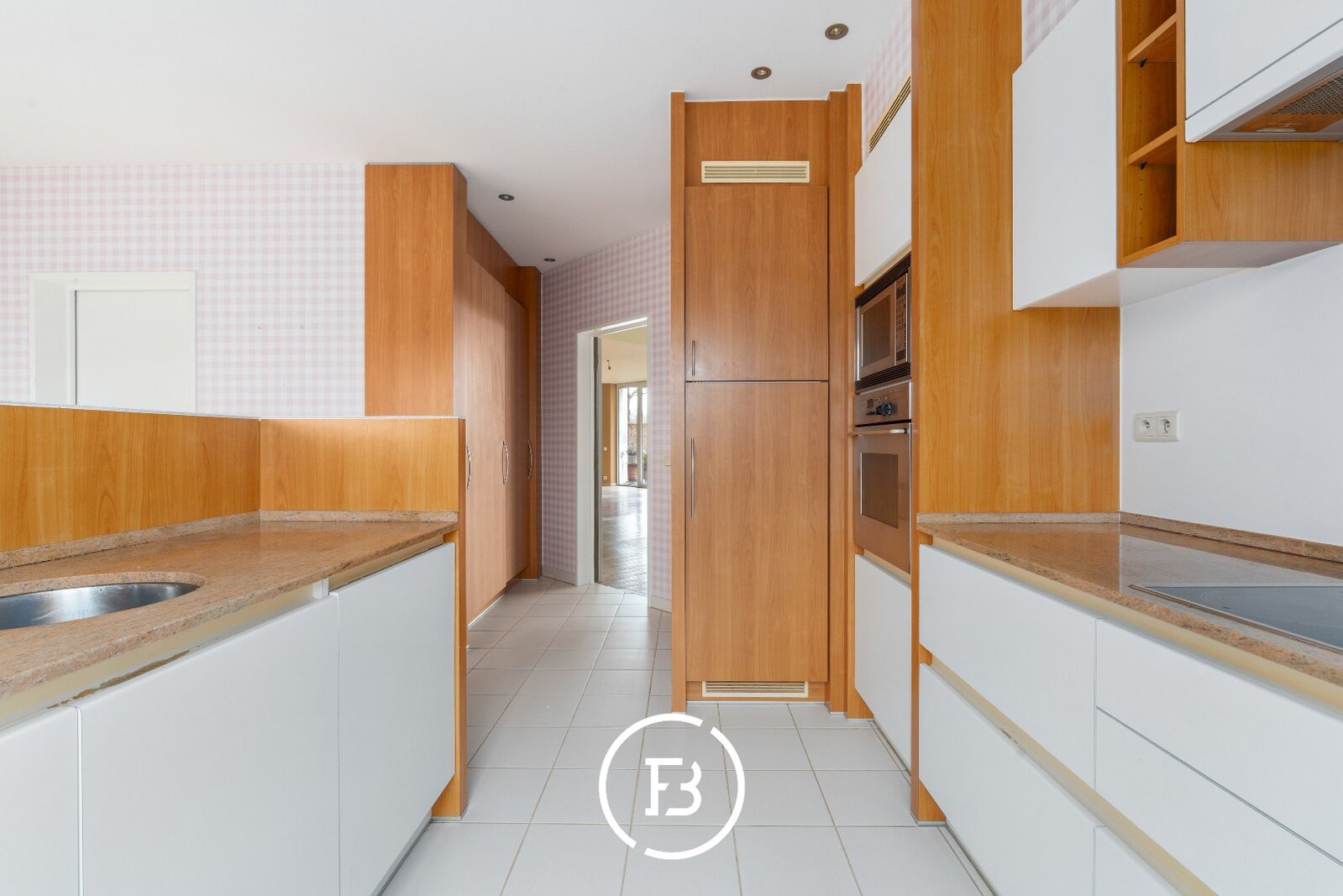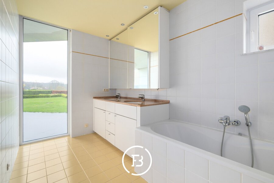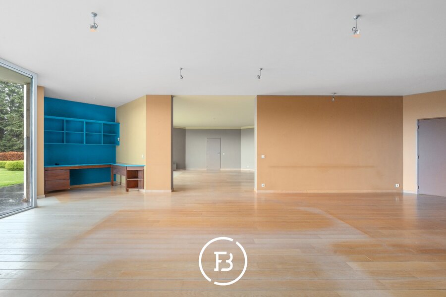Cet appartement à Sint-Martens-Latem a une surface habitable de 271 m² et offre un environnement de vie confortable dans un endroit calme. Le salon spacieux avec cheminée bénéficie de beaucoup de lumière naturelle et offre une belle vue sur le jardin privé et la Lys. La salle à manger adjacente s'intègre parfaitement et crée un environnement de vie agréable et ouvert.
