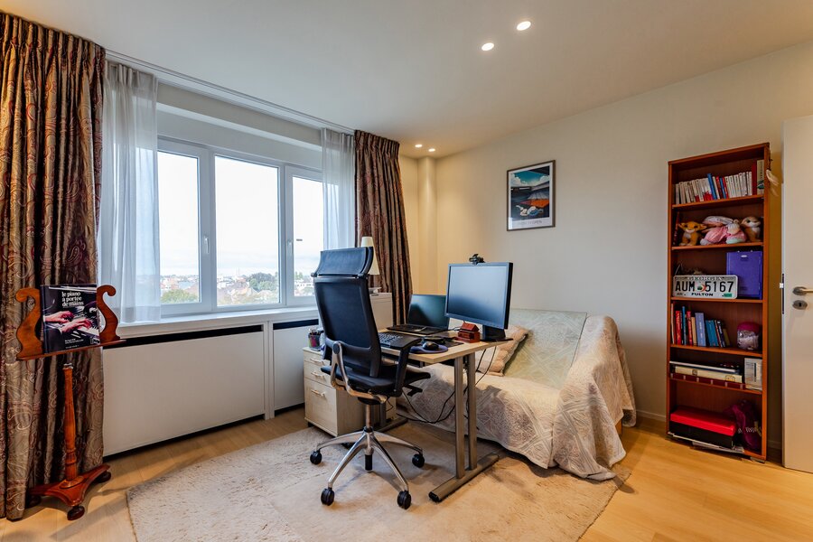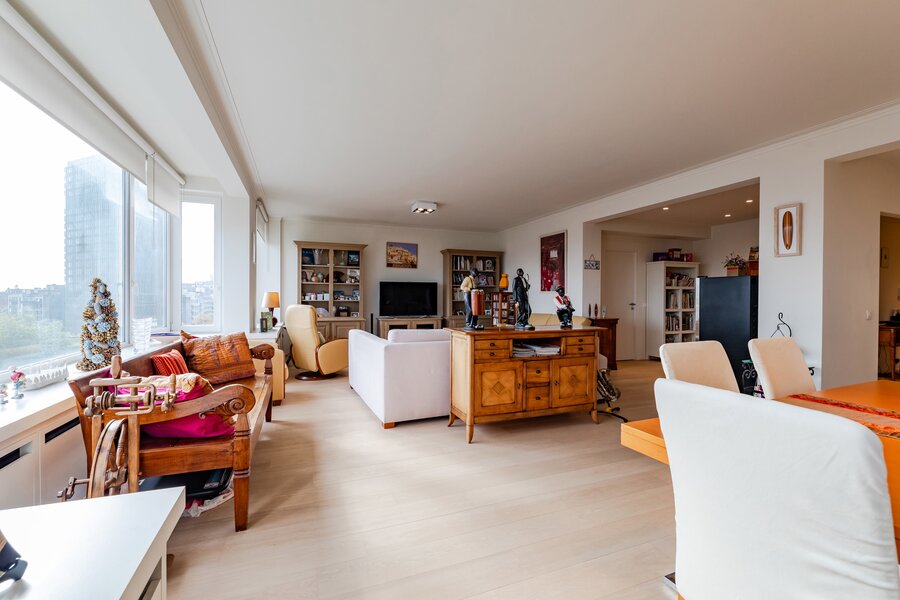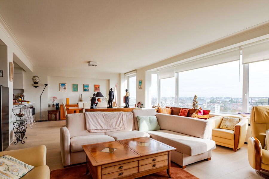 À proximité de l’Abbaye de la Cambre et du Bois de la Cambre, cet élégant appartement situé au 9ᵉ étage d’un immeuble de standing de 1965 profite d’une vue dégagée exceptionnelle et d’un cadre verdoyant à quelques pas des commodités d’Ixelles.
