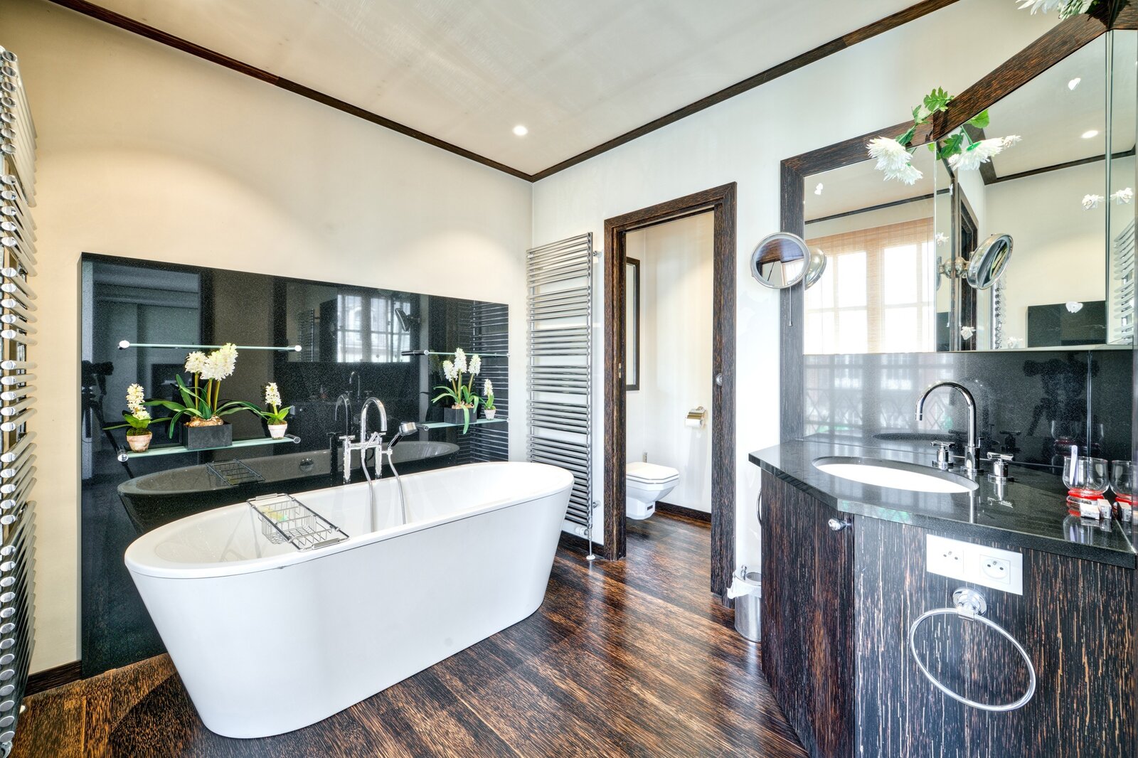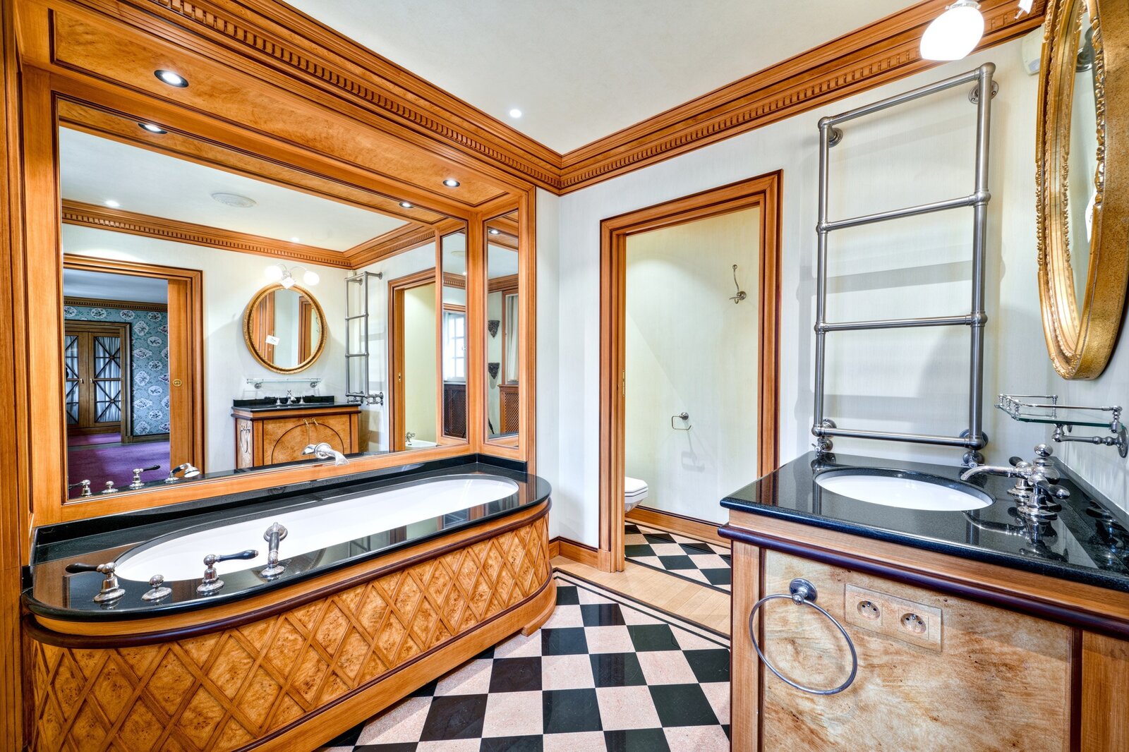 L’hôtel particulier séduit par la noblesse de ses volumes, la qualité de ses finitions et la beauté de ses réceptions. Une galerie d’entrée majestueuse mène à de vastes espaces de réception baignés de lumière, ouvrant de plain-pied sur la terrasse et le jardin. Les hauteurs sous plafond remarquables (jusqu’à 4 mètres) et les cheminées d’époque confèrent à l’ensemble une atmosphère raffinée et intemporelle. La propriété comprend six suites, chacune avec son dressing et sa salle de bains privative, ainsi que plusieurs espaces de détente : un sauna, un hammam, une salle de sport et un grand dressing aménagé sous toiture. Le sous-sol, lumineux grâce à une cour anglaise, abrite une cuisine professionnelle avec chambre froide, une cave à vins, une buanderie, une chambre de service avec salle de bains.