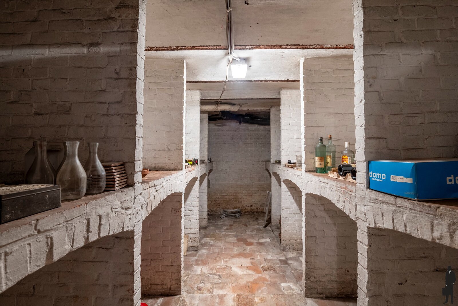 Kelder: De woning beschikt over een zeer ruime kelder met meerdere compartimenten, inclusief een kamer met bar. Vanuit de kelder is er eveneens rechtstreeks toegang tot de tuin.