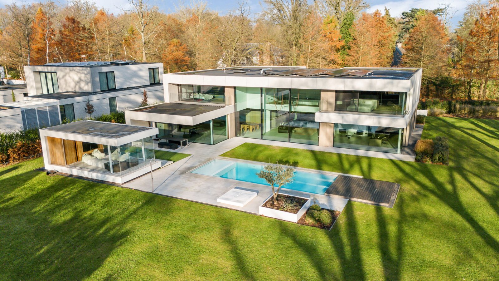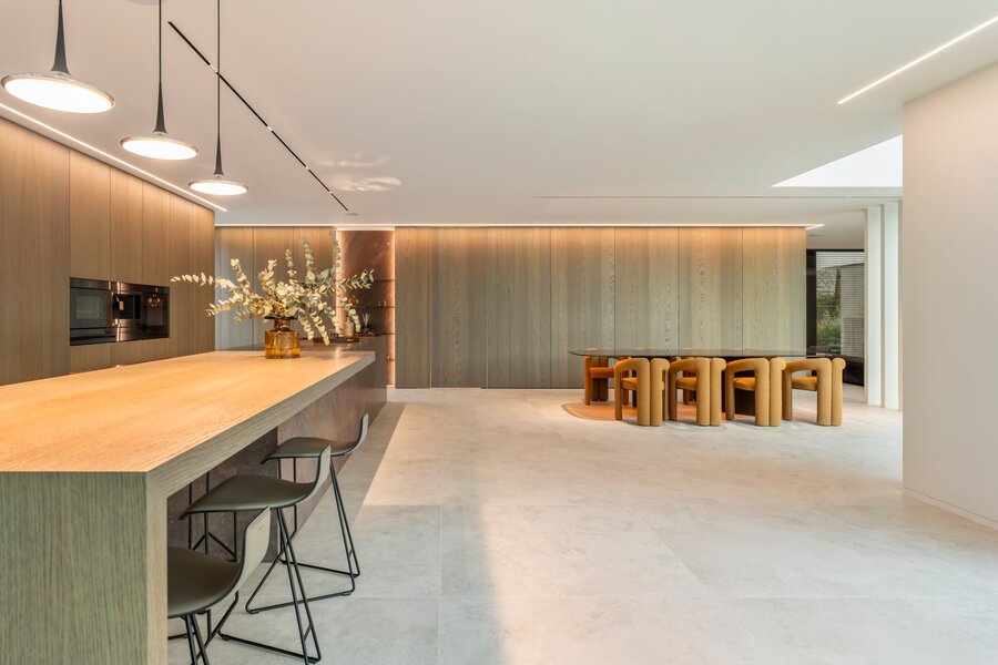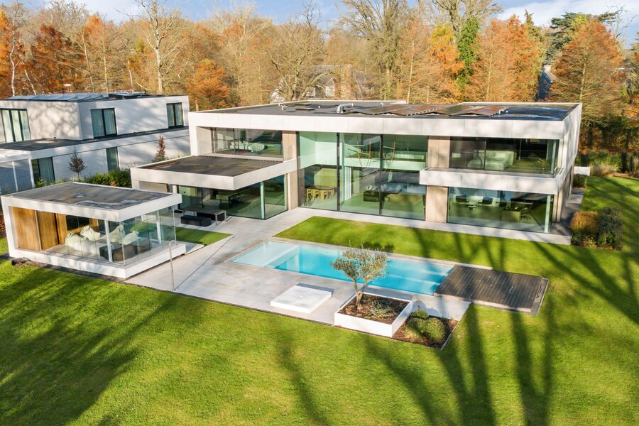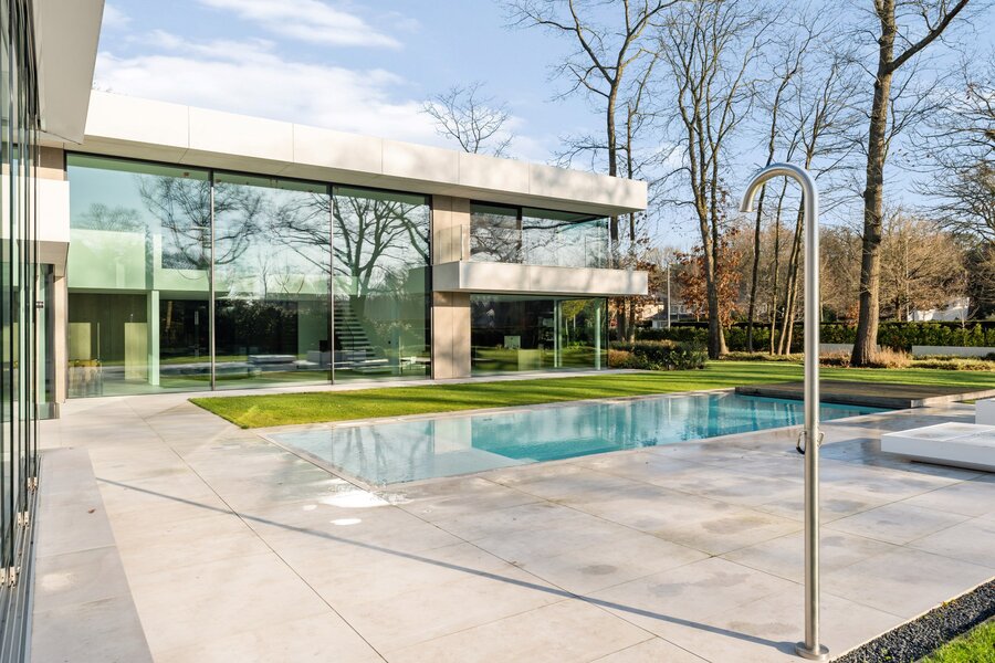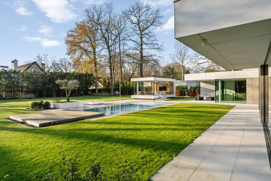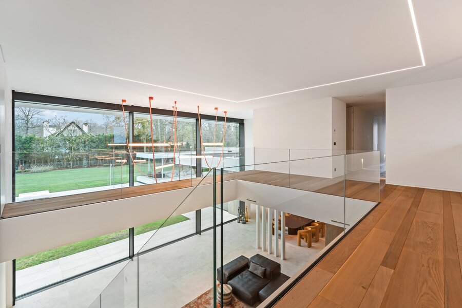 Cette villa exclusive combine une architecture contemporaine avec un confort de vie ultime, située dans un emplacement de premier choix. Grâce aux grandes baies vitrées, la maison est baignée de lumière naturelle, créant une connexion unique entre les espaces intérieurs et extérieurs.