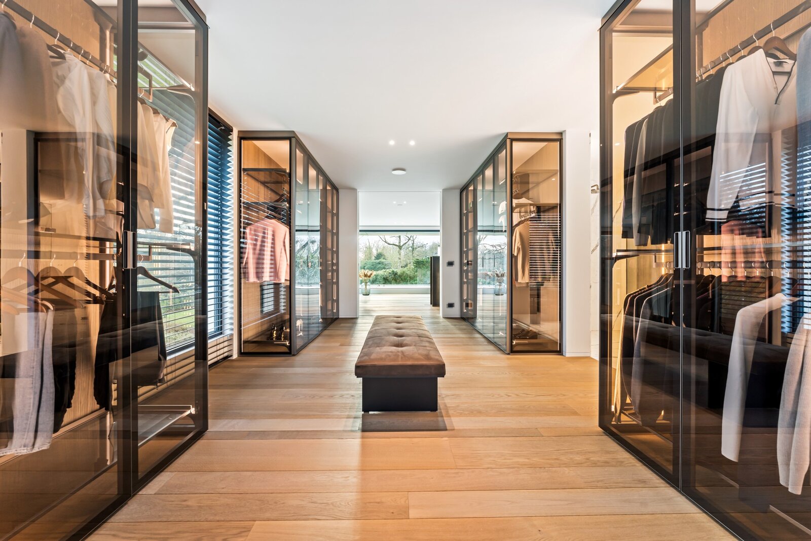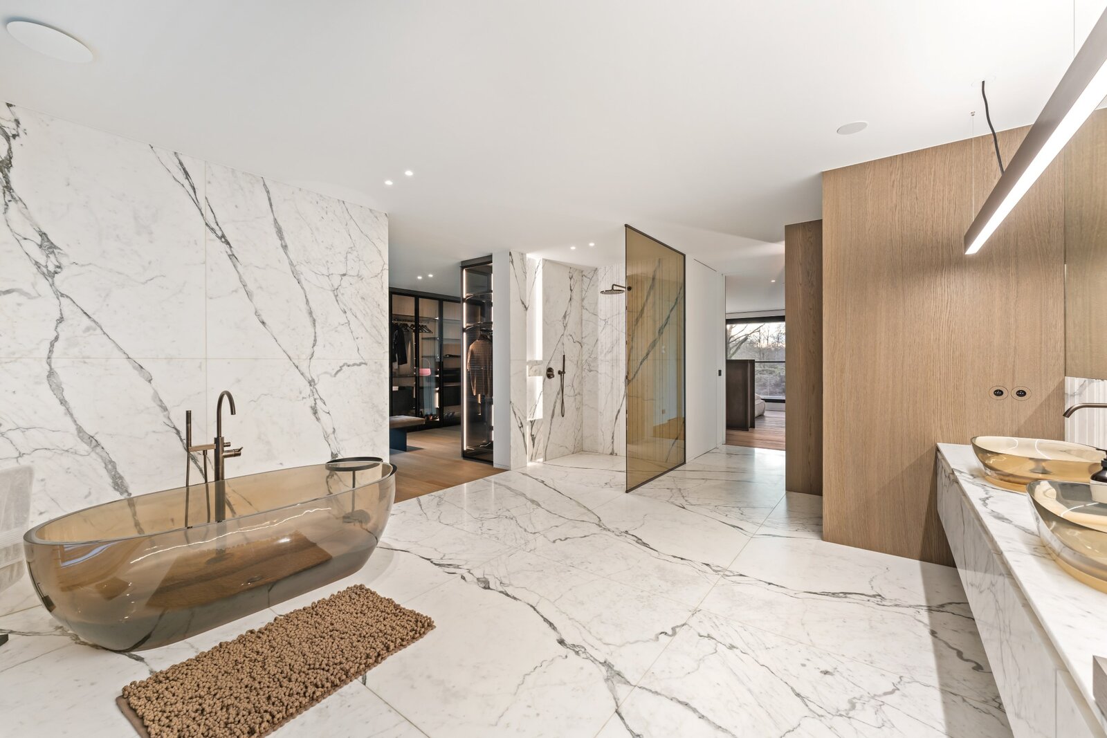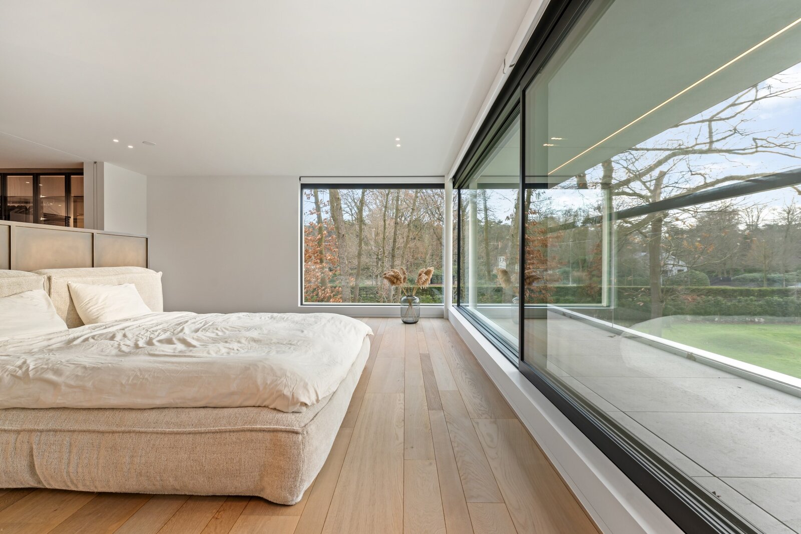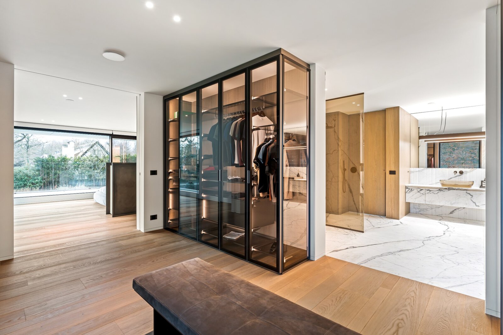Une suite parentale luxueuse avec un dressing spacieux et une élégante salle de bains finie avec des matériaux de luxe. De plus, il y a trois chambres spacieuses, chacune avec sa propre salle de bains.
