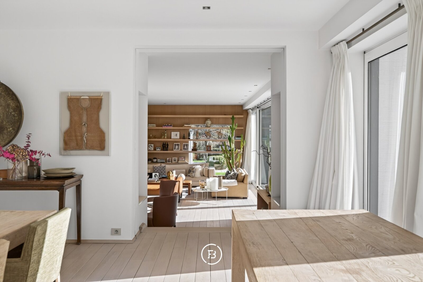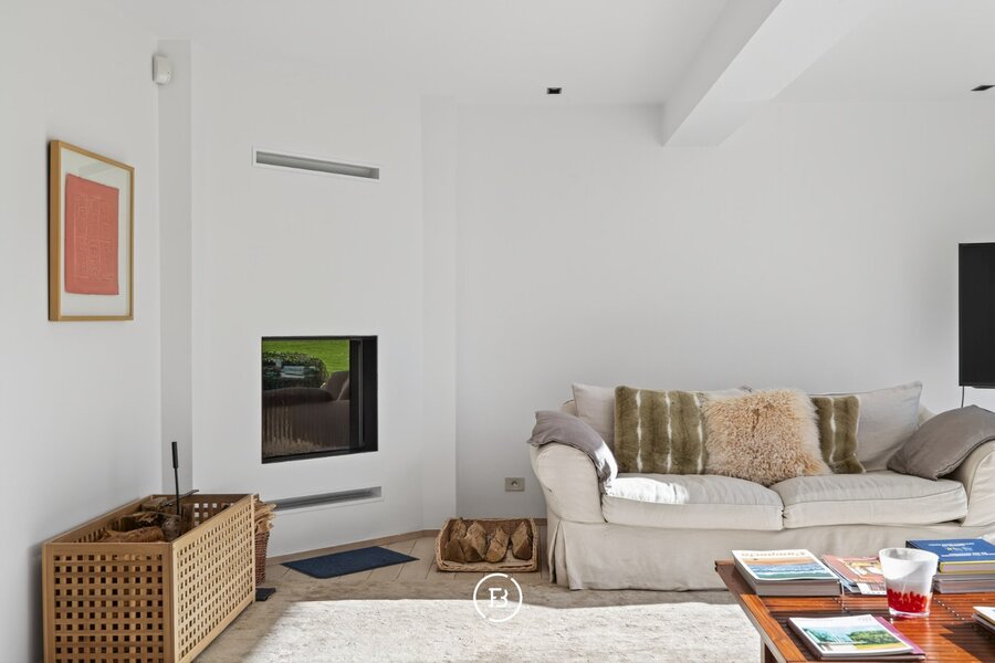 La villa a fait l’objet d’une rénovation soignée au fil des années par le célèbre architecte Marc Corbiau. Quelques années plus tard, le passage vitré reliant les deux ailes de la propriété a été subtilement repensé par Lionel Jadot, apportant à l’ensemble une dimension contemporaine et une véritable profondeur architecturale.