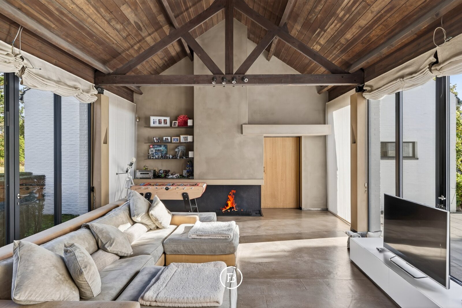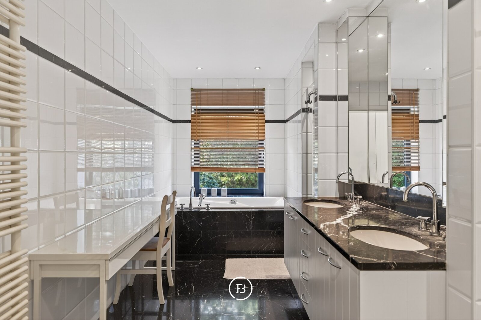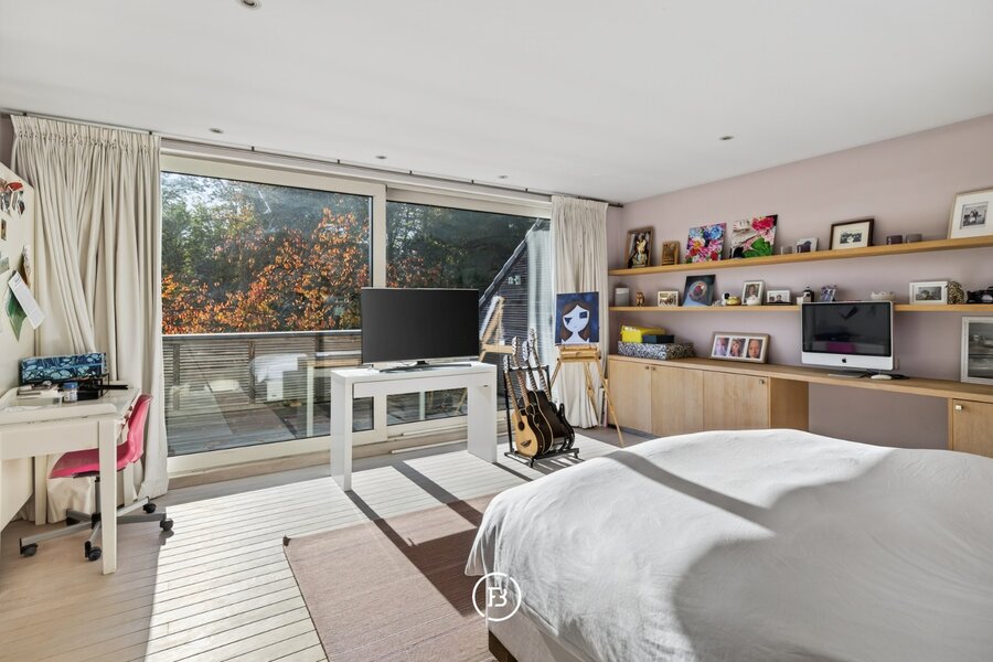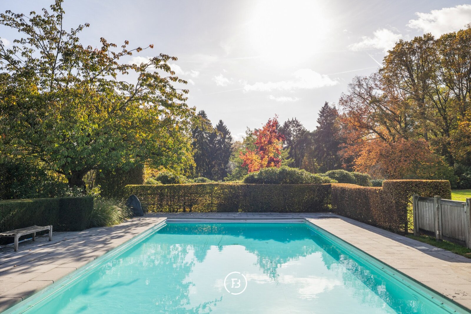 Située dans un domaine privé à Hoogvorst, l’un des quartiers résidentiels les plus prisés de Tervuren, cette villa exceptionnelle révèle tout son charme au cœur d’un parc luxuriant d’un hectare. La surface habitable de 1.017 m² comprend sept chambres élégantes et autant de salles de bains. De grandes baies vitrées laissent entrer abondamment la lumière naturelle et créent une connexion fluide entre les espaces de vie ouverts et le jardin orienté plein sud, magnifiquement arboré et parfaitement entretenu.