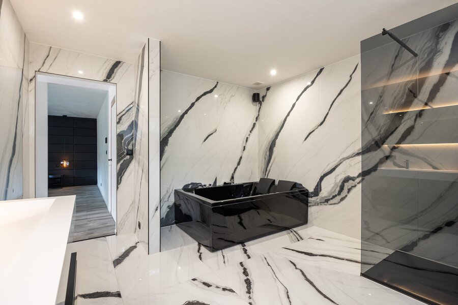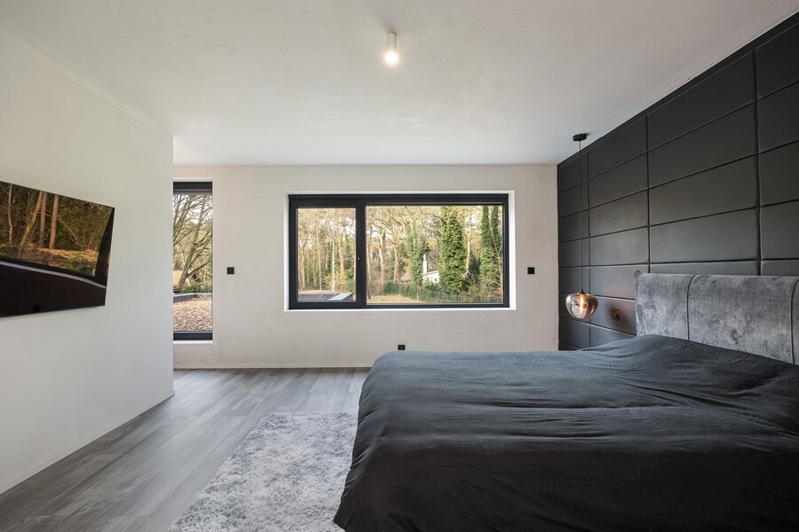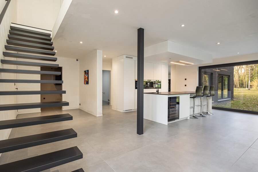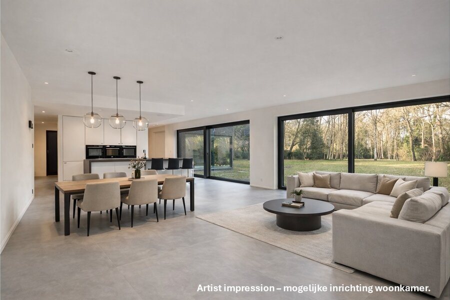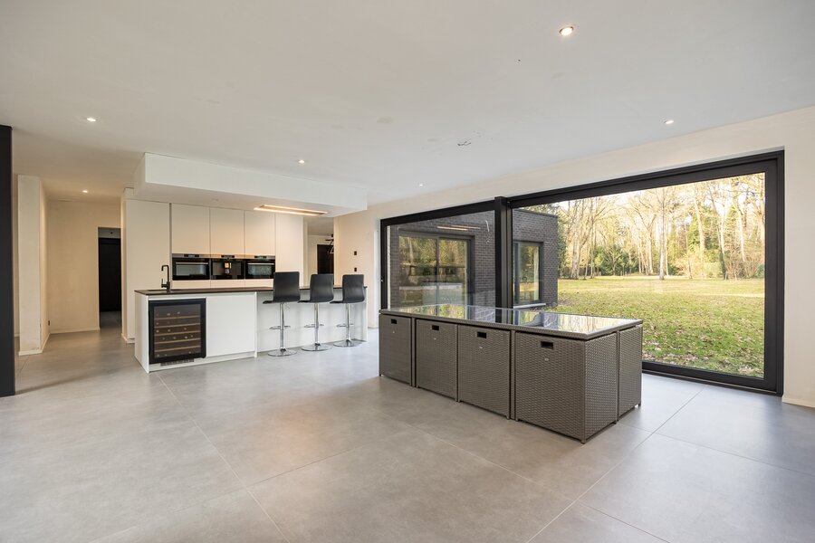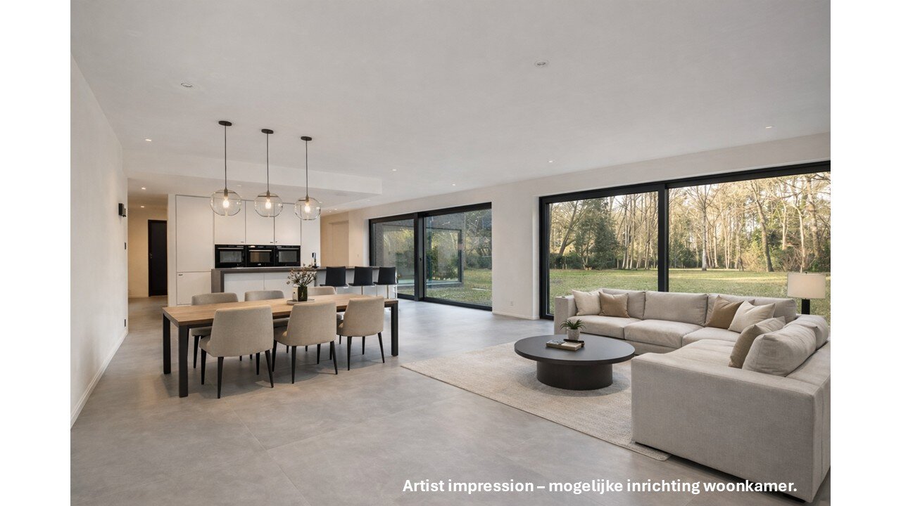 Cette villa exceptionnelle de 505 m² offre une parfaite combinaison d'architecture moderne, de luxe et de confort. La propriété dispose de quatre chambres spacieuses, d'une salle de bain et de deux salles de bain à terminer, idéales pour les grandes familles. De grandes baies vitrées laissent entrer abondamment la lumière du jour et offrent une vue magnifique sur le jardin d'environ 32 ares, garantissant une intimité totale.