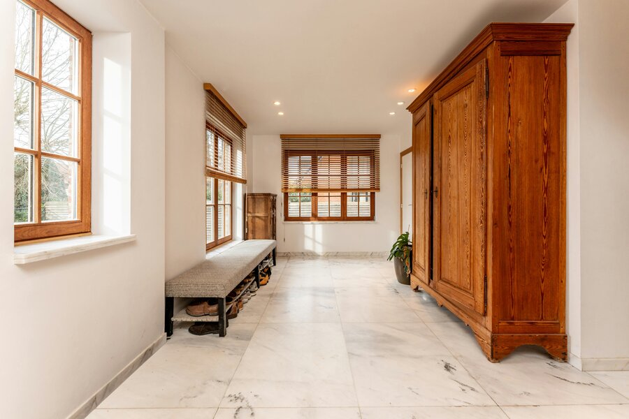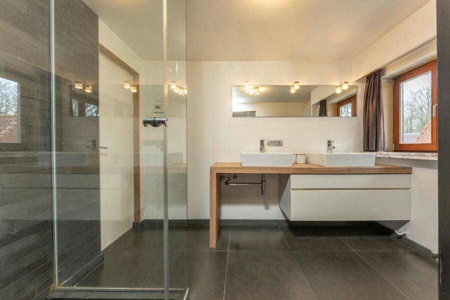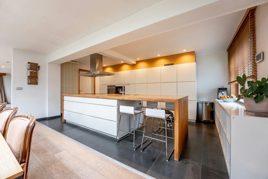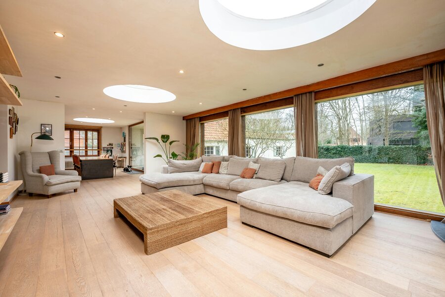 À l'intérieur, la villa surprend par son volume impressionnant et son aménagement bien pensé. Avec pas moins de six chambres complètes et trois salles de bain, cette propriété offre un confort sans pareil. L'espace de vie dégage une atmosphère et peut être agrandi à votre guise avec l'espace polyvalent existant. Cet espace flexible de la maison est idéal comme bureau à domicile spacieux, comme bibliothèque inspirante ou simplement comme extension du salon.