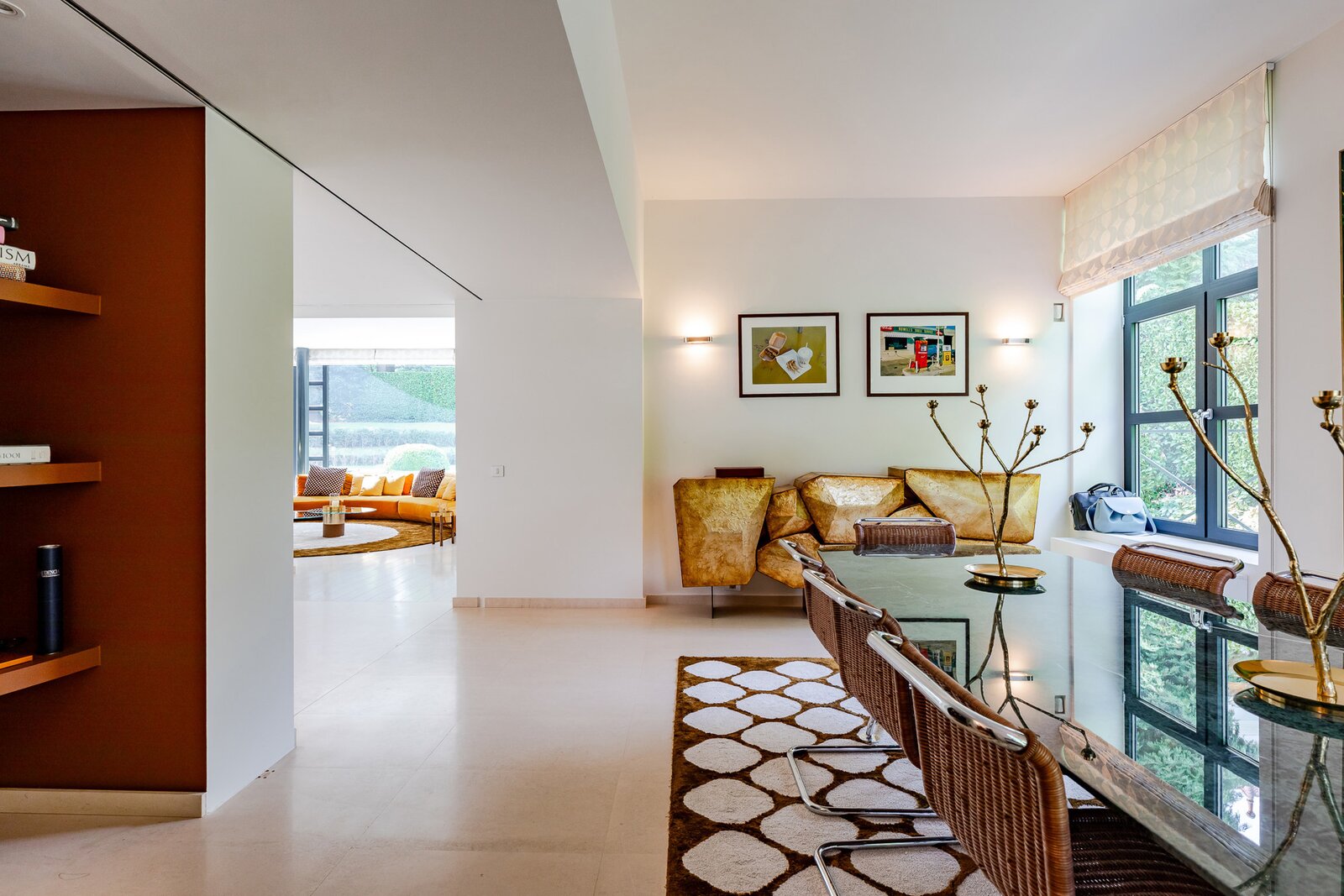 Alliant lignes épurées et grandes baies vitrées, cette dernière s'organise au rez-de-chaussée par un hall d'entrée avec espace vestiaire desservant d'un côté la cuisine avec son coin déjeuner et de l'autre de vastes et lumineuses réceptions comprenant un salon/bar, coin télévision et salle à manger, le tout s'ouvrant sur les terrasses et le jardin. Un bureau avec coin douche idéal pour une profession libérale complète ce niveau. La partie nuit comprend la chambre des maîtres avec double dressing et salle de bain en suite ainsi que trois autres chambres avec une salle de bain partagée et une salle de douches attenante. Le sous-sol propose un espace wellness (jacuzzi, sauna), un studio indépendant avec kitchenette et salle d’eau, idéal pour du personnel ou un usage polyvalent, une buanderie, cave à vins ainsi qu'un garage trois voitures.