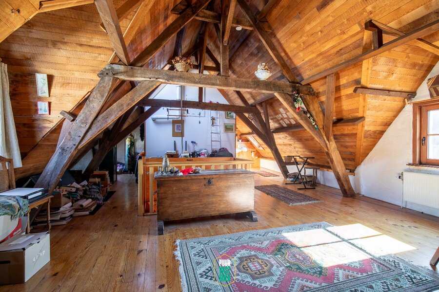 Op de eerste verdieping bevinden zich twee zeer ruime slaapkamers en de badkamer. De vaste trap brengt je naar de hoge, volledig afgewerkte en geïsoleerde leefzolder, een veelzijdige ruimte die perfect dienst kan doen als extra slaapkamers, atelier, hobbyruimte of mancave. Hier is ook de technische ruimte ondergebracht.
