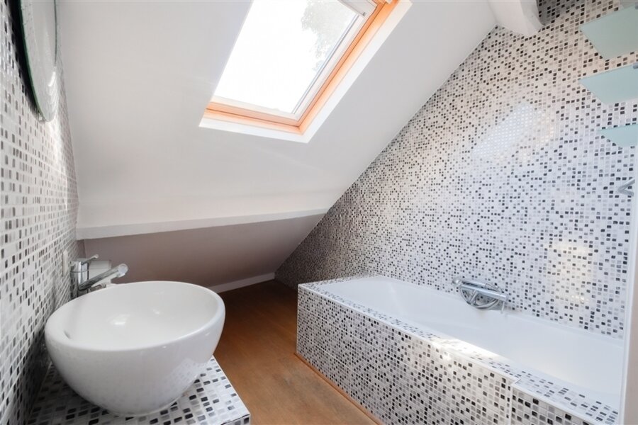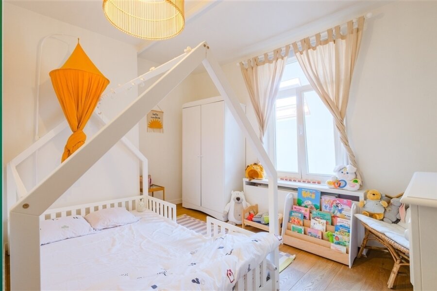 La chambre à coucher est actuellement divisée en une chambre principale avec dressing à l'avant et séparée par une chambre d'enfant supplémentaire à l'arrière.