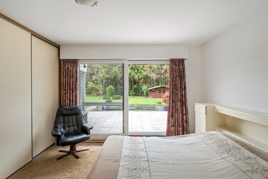 We betreden de woning via de centrale inkomhal met vestiaire en gastentoilet. Via deze ruimte heeft u enerzijds toegang tot de woonkamer met aparte zithoek met gashaard, gezellige erker en aansluitende eetkamer. Anderzijds kunnen we via deze weg de vernieuwde keuken betreden die volledig is geïnstalleerd met koelkast, vaatwasmachine, diepvriezer, inductiekookplaat, combi oven en oven. Deze geeft uit op de eetkamer. De masterbedroom met eigen badkamer is voorzien op de gelijkvloerse verdieping zodat de woning ook ideaal geschikt is voor kopers op leeftijd, mindervaliden of co-housing.