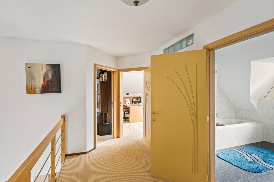 Op de eerste verdieping vinden we 4 ruime slaapkamers terug, een tweede badkamer en een interessante polyvalente/hobbyruimte.