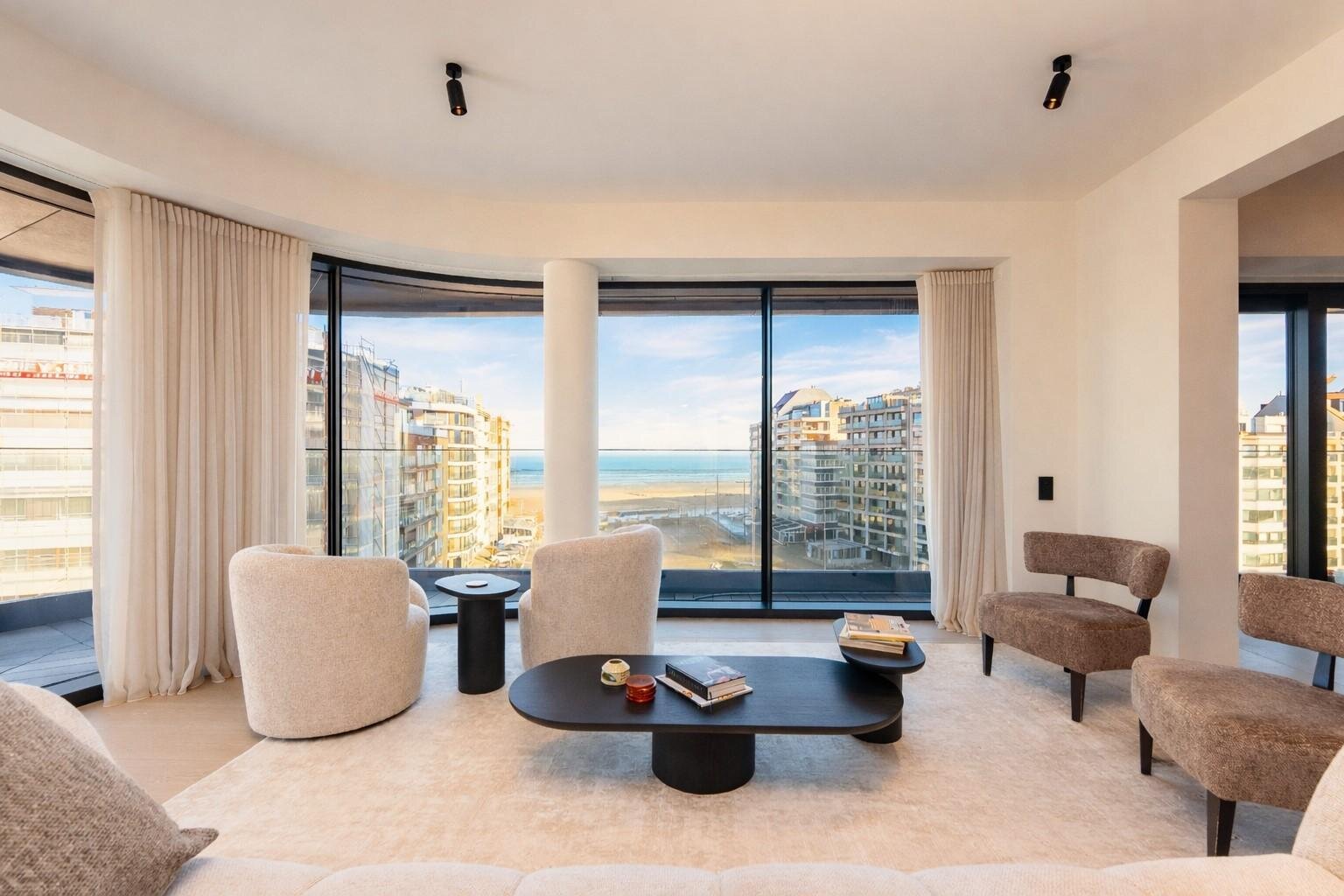 Dit exclusieve eigendom verenigt tijdloze architectuur met hedendaagse luxe en biedt een ongeëvenaarde woonbeleving aan de Belgische kust. Het volledige interieur werd tot in de kleinste details ontworpen door het gerenommeerde bureau Grain Design en getuigt van een perfect doorgetrokken esthetiek, verfijnd maatwerk en het gebruik van hoogwaardige, luxueuze materialen.