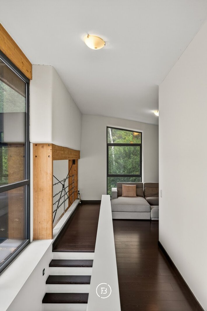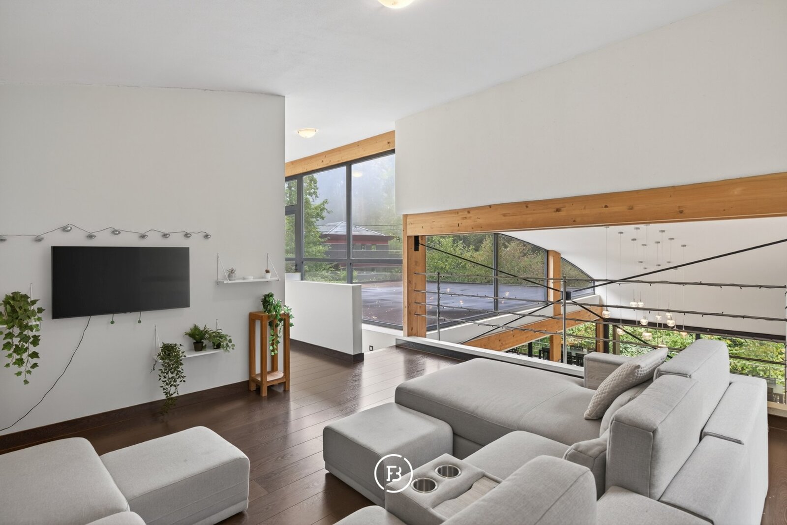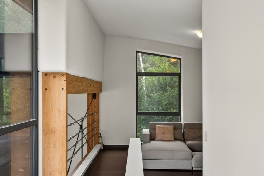 Le premier étage offre une mezzanine confortable, actuellement aménagée en deuxième salon, et une chambre avec salle de bains attenante.