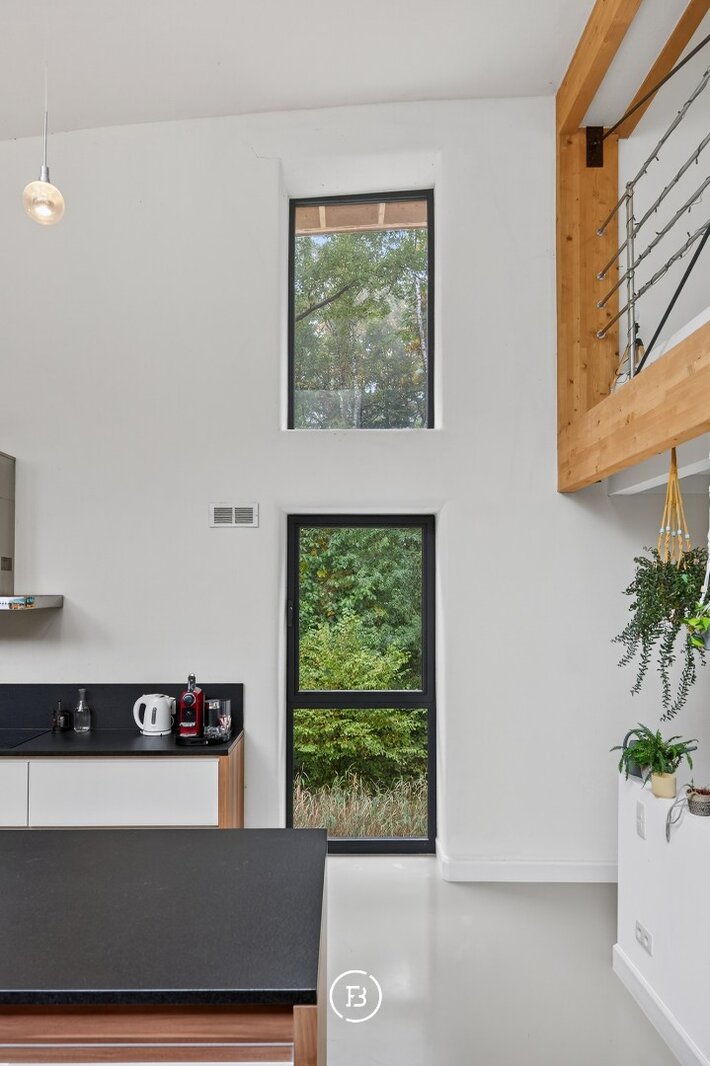 Cette maison unique à Rotselaar, construite en 2012, se distingue par sa construction en paille avec finition en torchis. Grâce à cette méthode de construction naturelle et économe en énergie, la maison obtient un excellent score EPC.