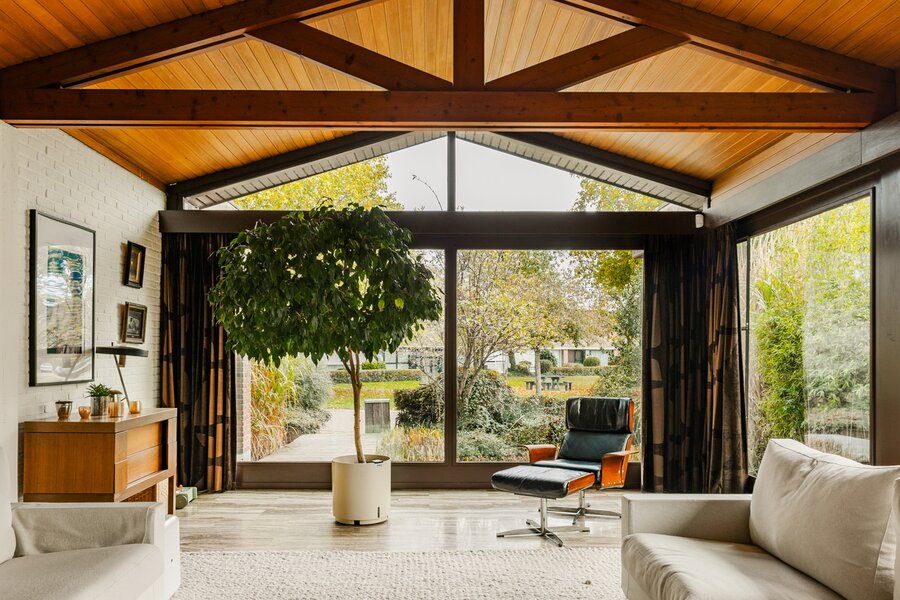 En 1976, l’architecte Jo Roels a construit cette villa de plain-pied pour lui-même. Les eigenaars actuels l’ont achetée directement auprès de lui – ils n’en sont donc que les deuxièmes habitants. Ils ont rénové cette maison avec beaucoup d’attention et de respect pour les éléments authentiques des années 70.