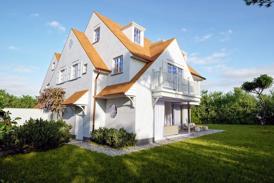 EMPLACEMENT DE CHOIX au Zoute, villa jumelée avec une orientation parfaite, entièrement cachée dans les sentiers Zoutois, à distance de marche des magasins, de la plage, du tennis et du Zwin.